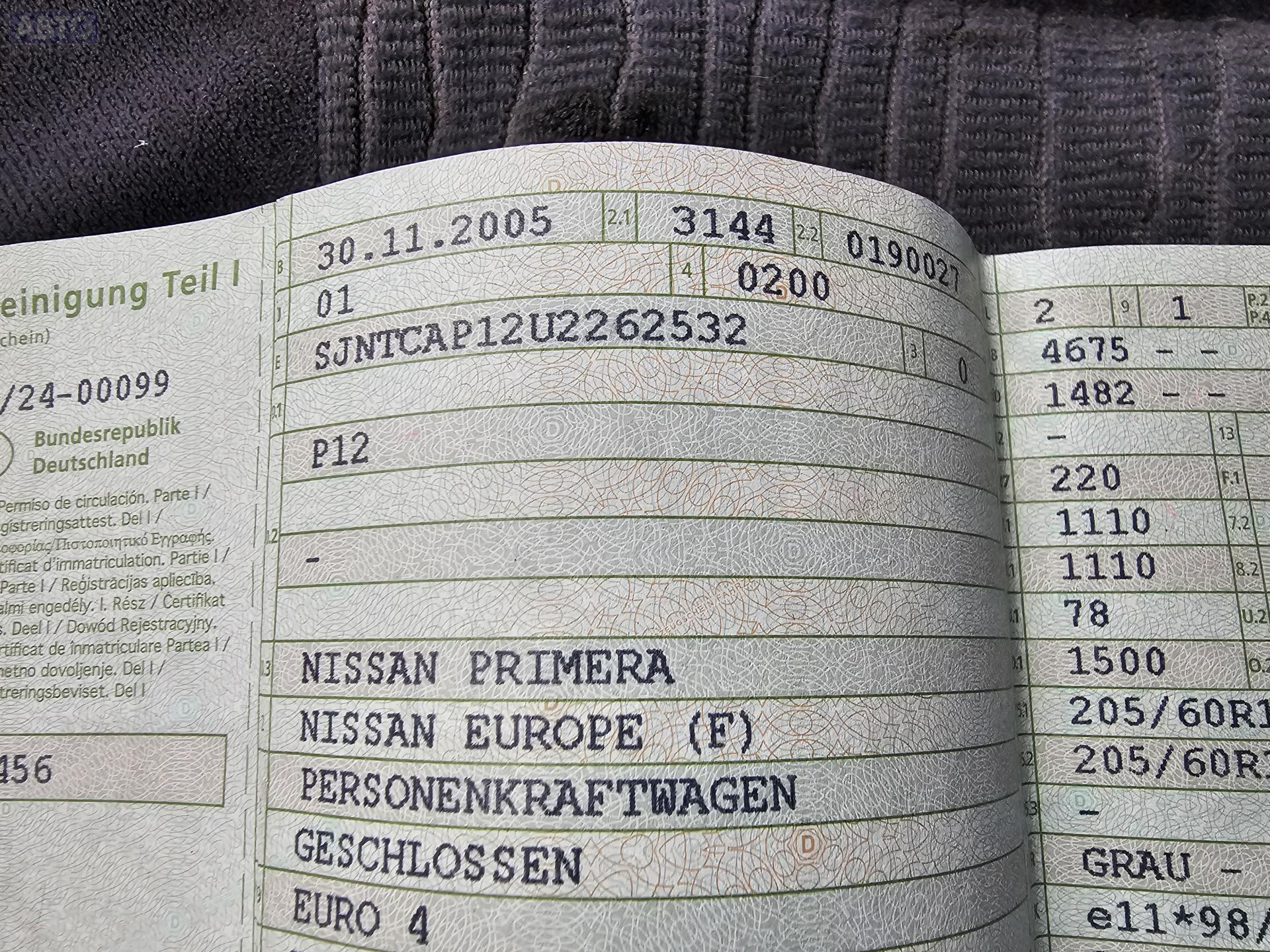 | Марка / Модель / Год: | Nissan Primera P12 (2002-2008) 2005 |