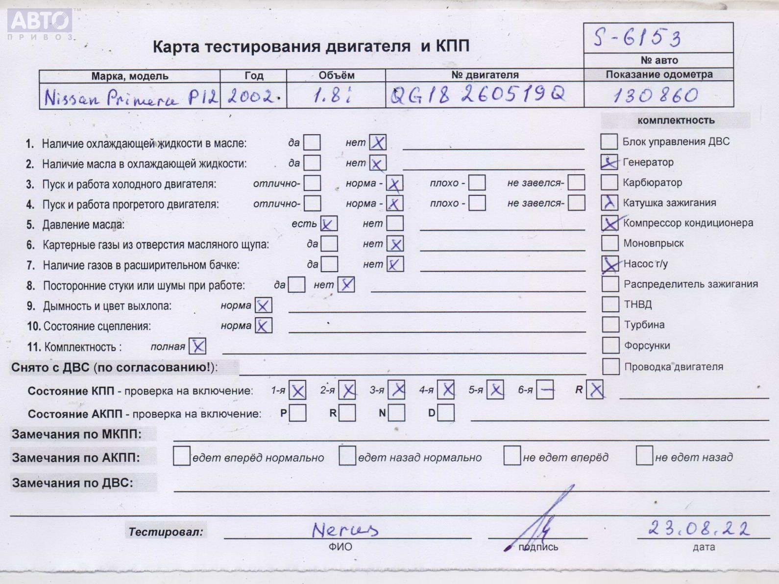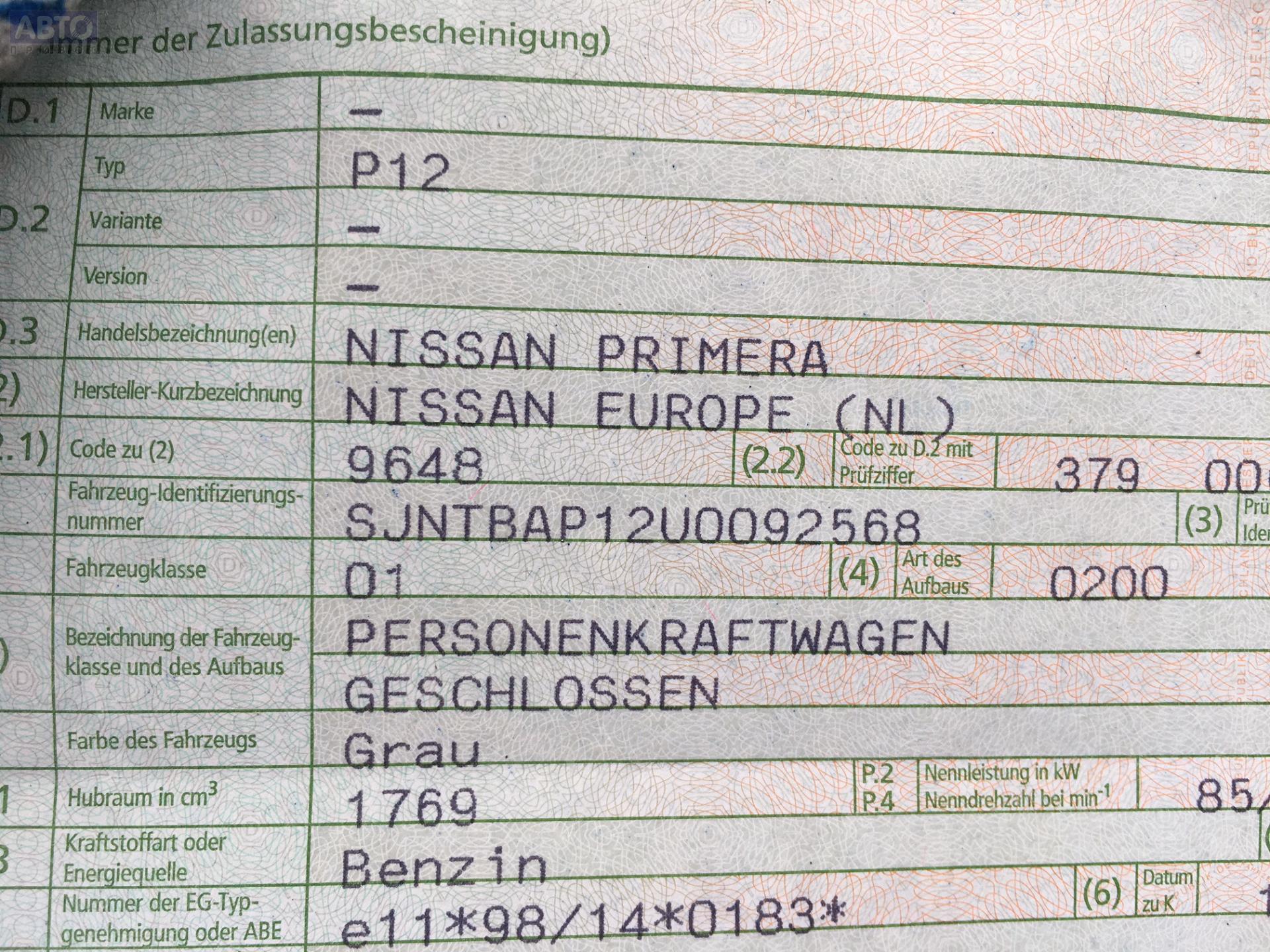 | Марка / Модель / Год: | Nissan Primera P12 (2002-2008) 2003 |