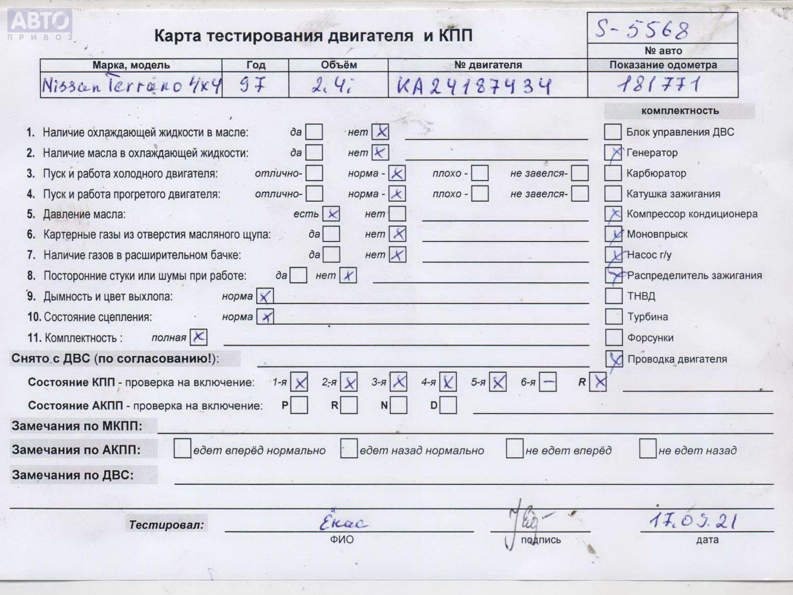 | Марка / Модель / Год: | Nissan Terrano II (1993-2006) R20 1996 |