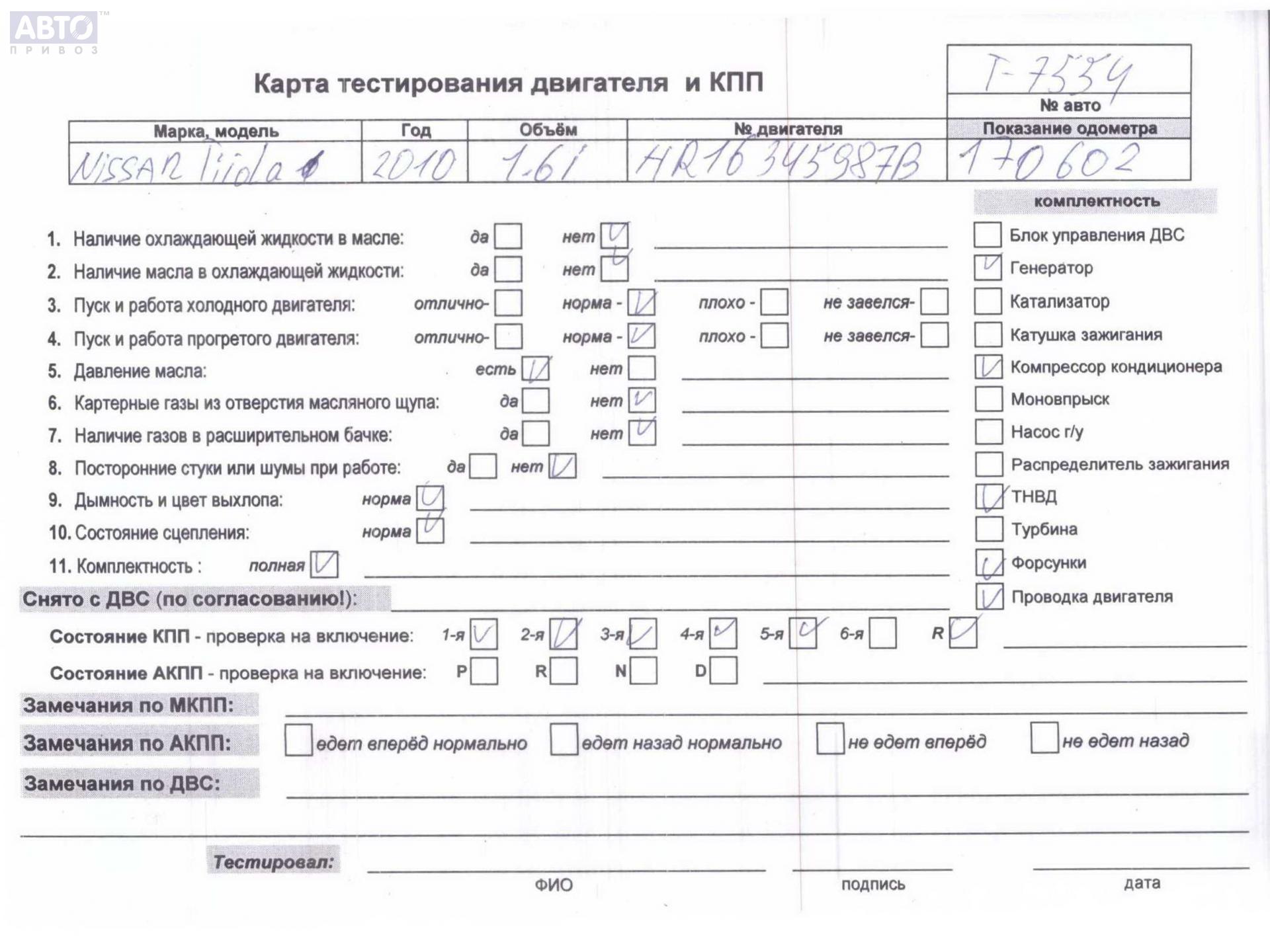 | Марка / Модель / Год: | Nissan Tiida 2010 |