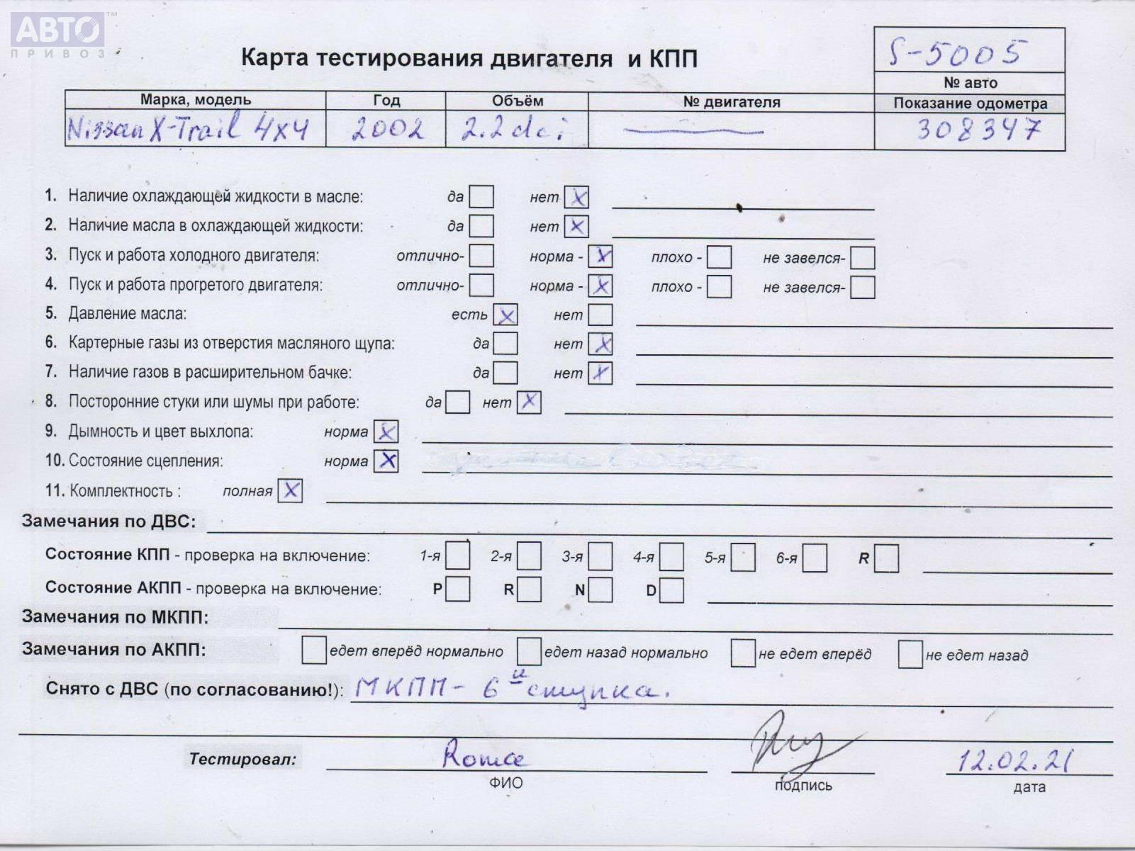 | Марка / Модель / Год: | Nissan X-Trail (2001-2007) T30 2002 |
