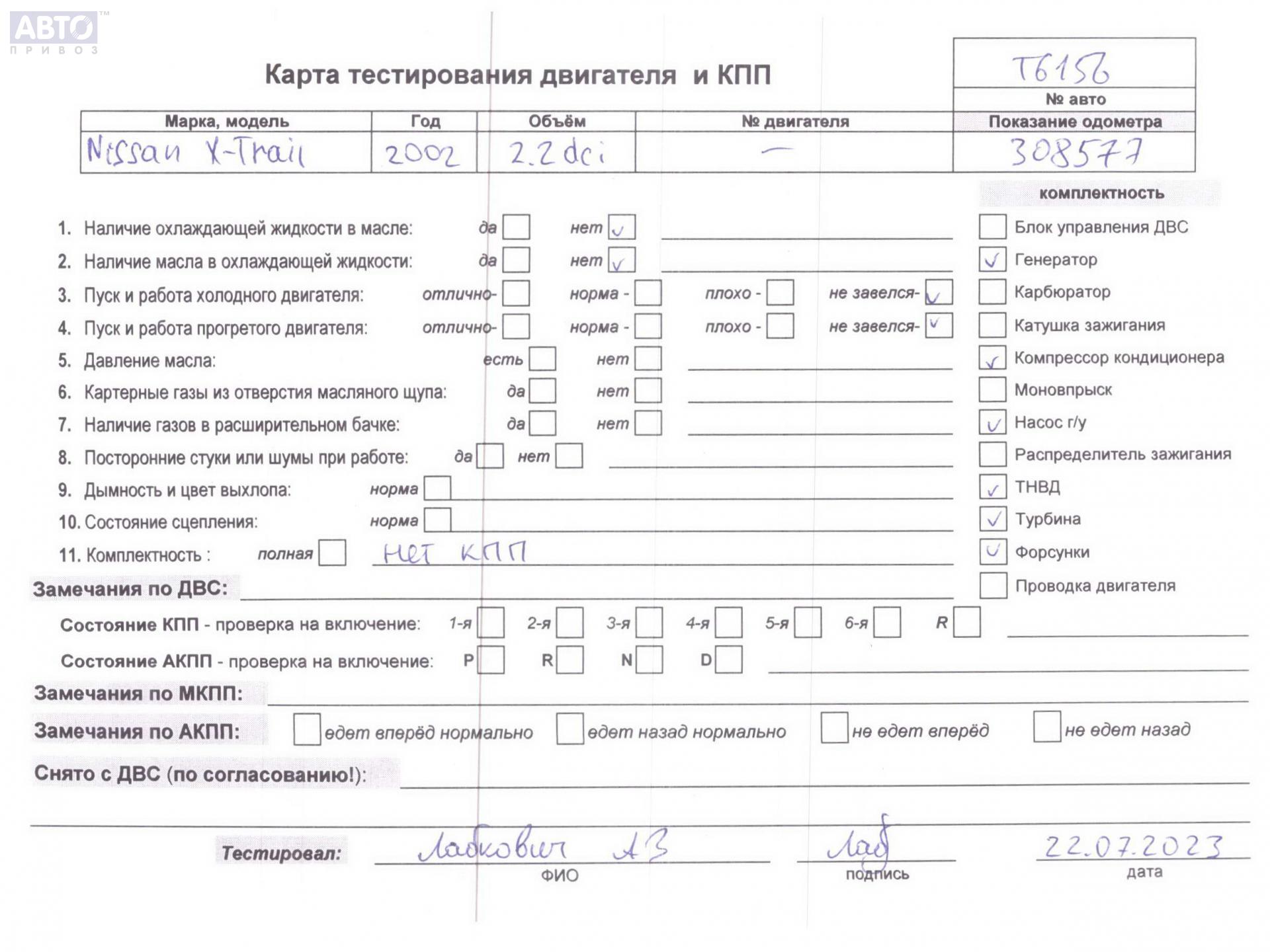 | Марка / Модель / Год: | Nissan X-Trail (2001-2007) T30 2002 |