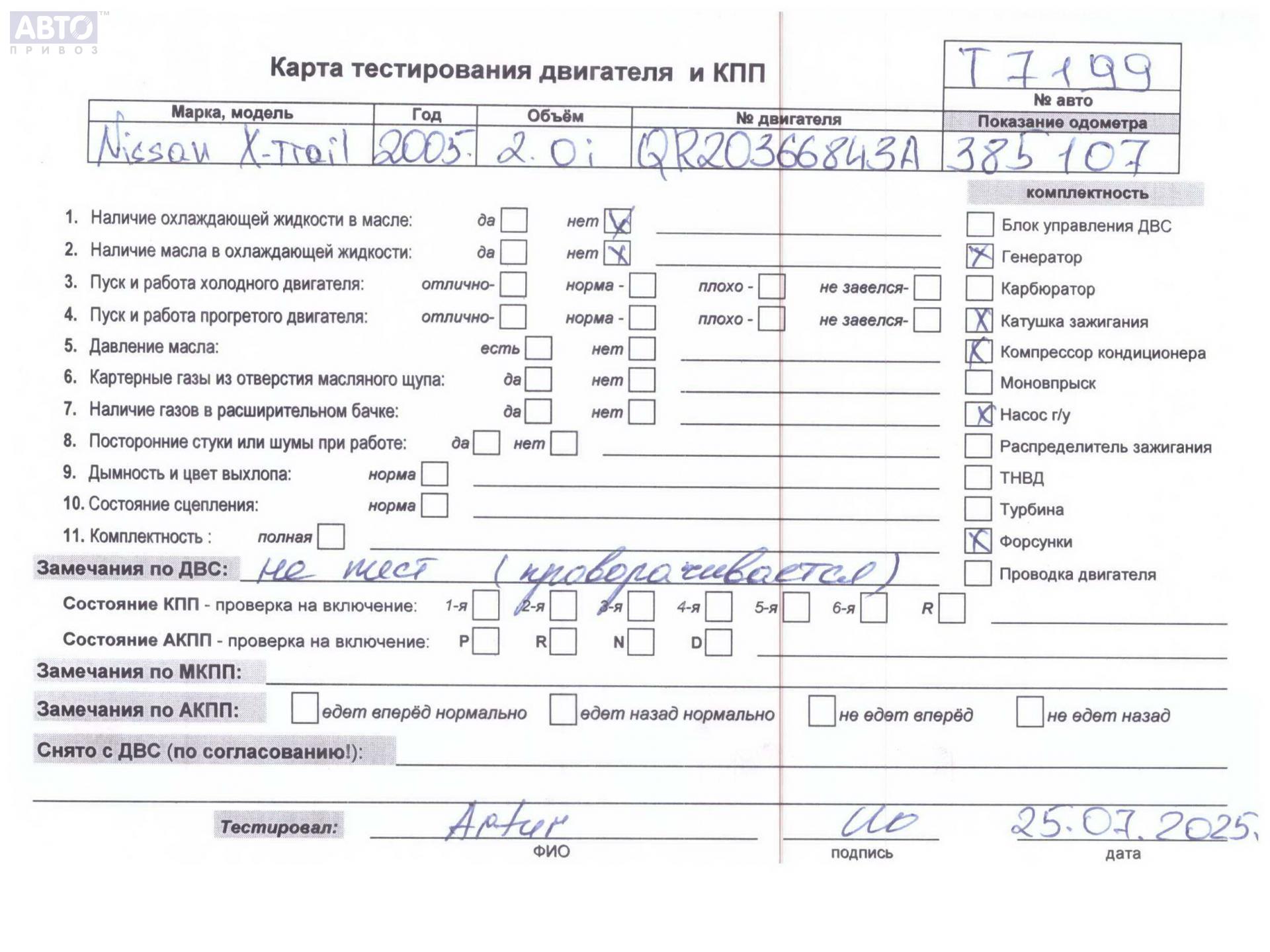| Автомобиль / VIN: | T7199 JN1TAAT30U0000386 |