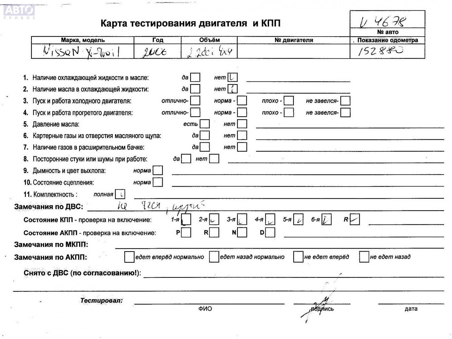| Автомобиль / VIN: | V4678 JN1TENT30U0331410 |