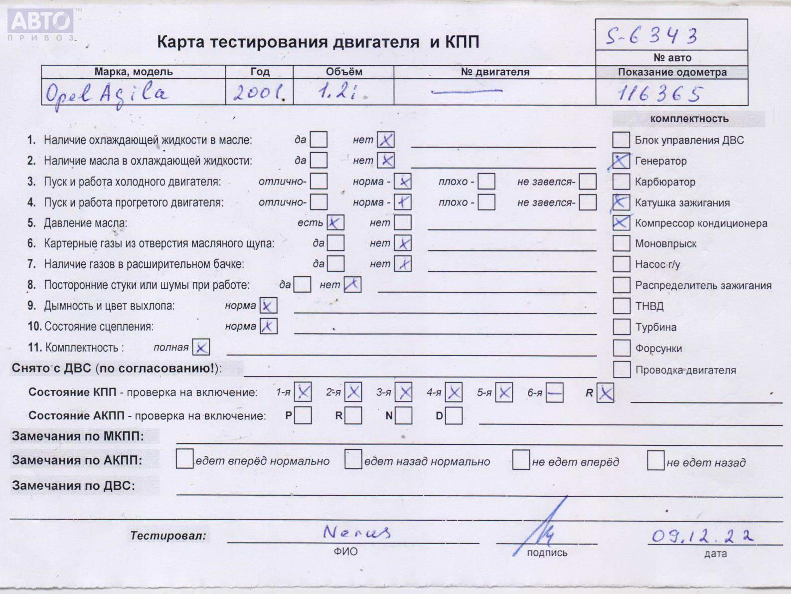 | Марка / Модель / Год: | Opel Agila A (2000-2007) 2001 |