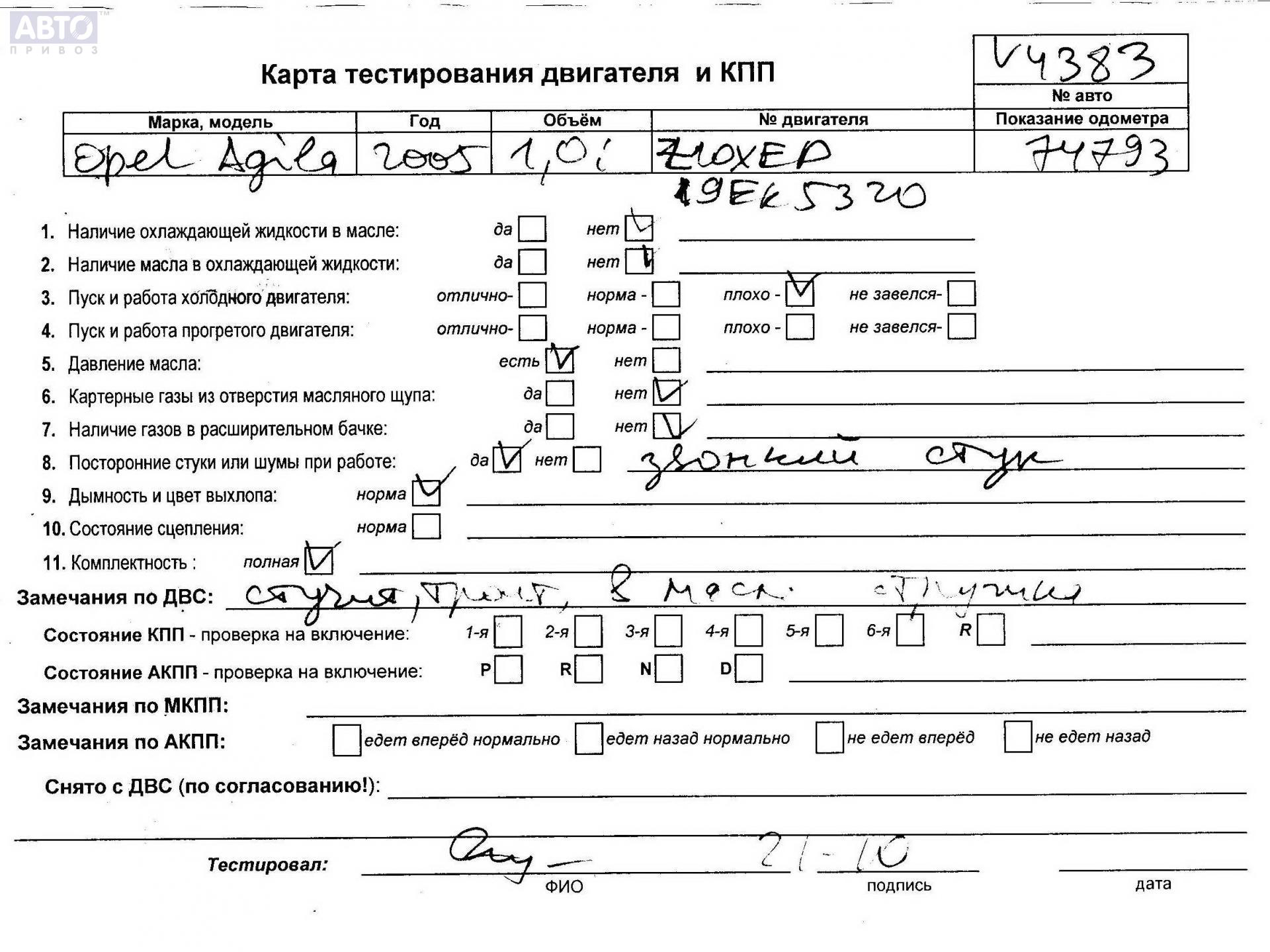 | Марка / Модель / Год: | Opel Agila A (2000-2007) 2005 |