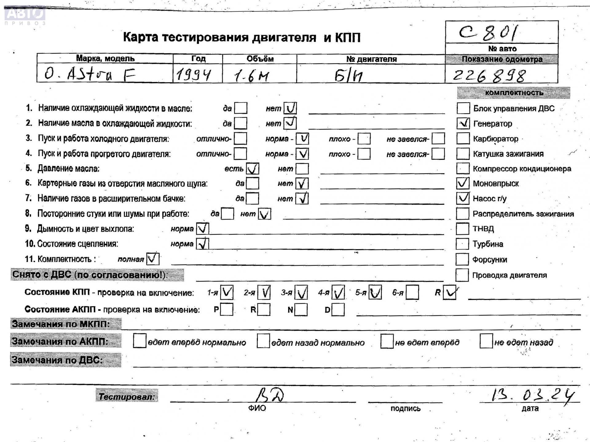 | Марка / Модель / Год: | Opel Astra F (1991-1998) 1994 |