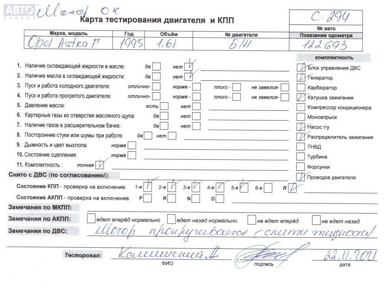 | Марка / Модель / Год: | Opel Astra F (1991-1998) 1995 |