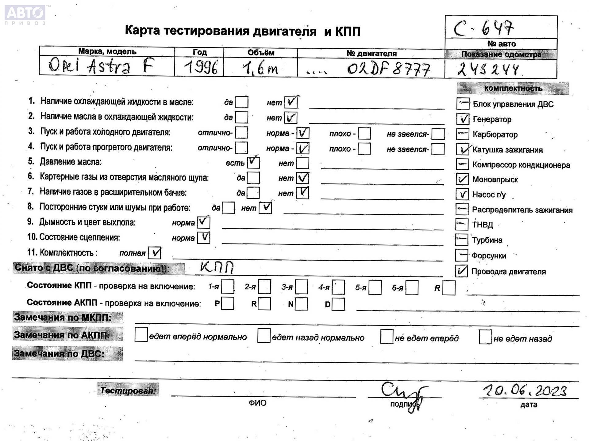 | Автомобиль / VIN: | C0647 W0L000058T2619270 |