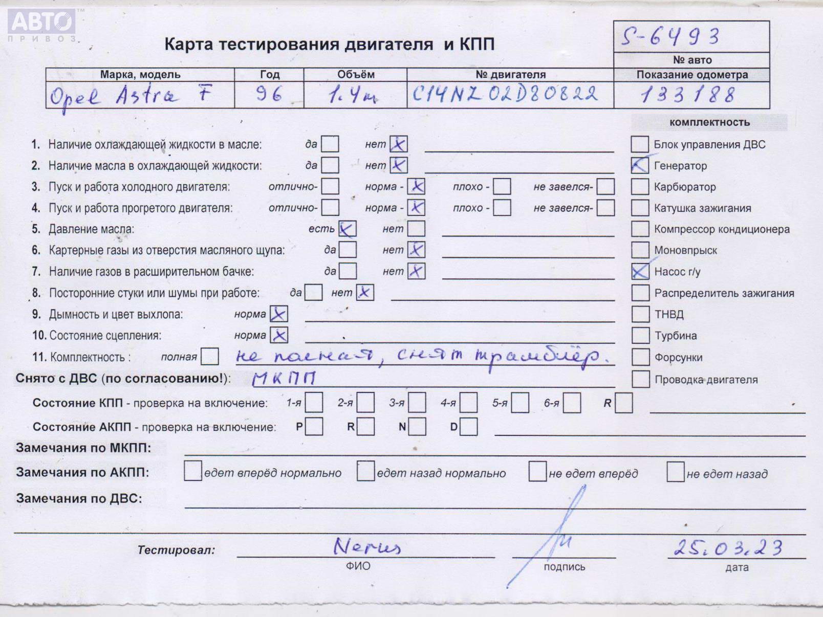 | Марка / Модель / Год: | Opel Astra F (1991-1998) 1996 |