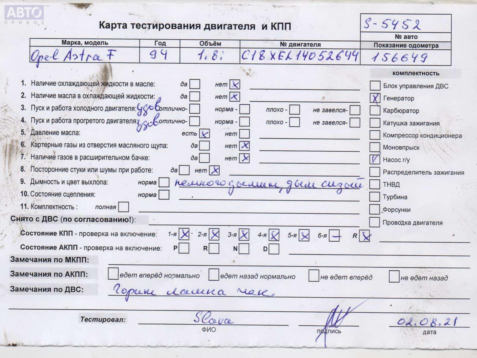 | Марка / Модель / Год: | Opel Astra F (1991-1998) 1994 |