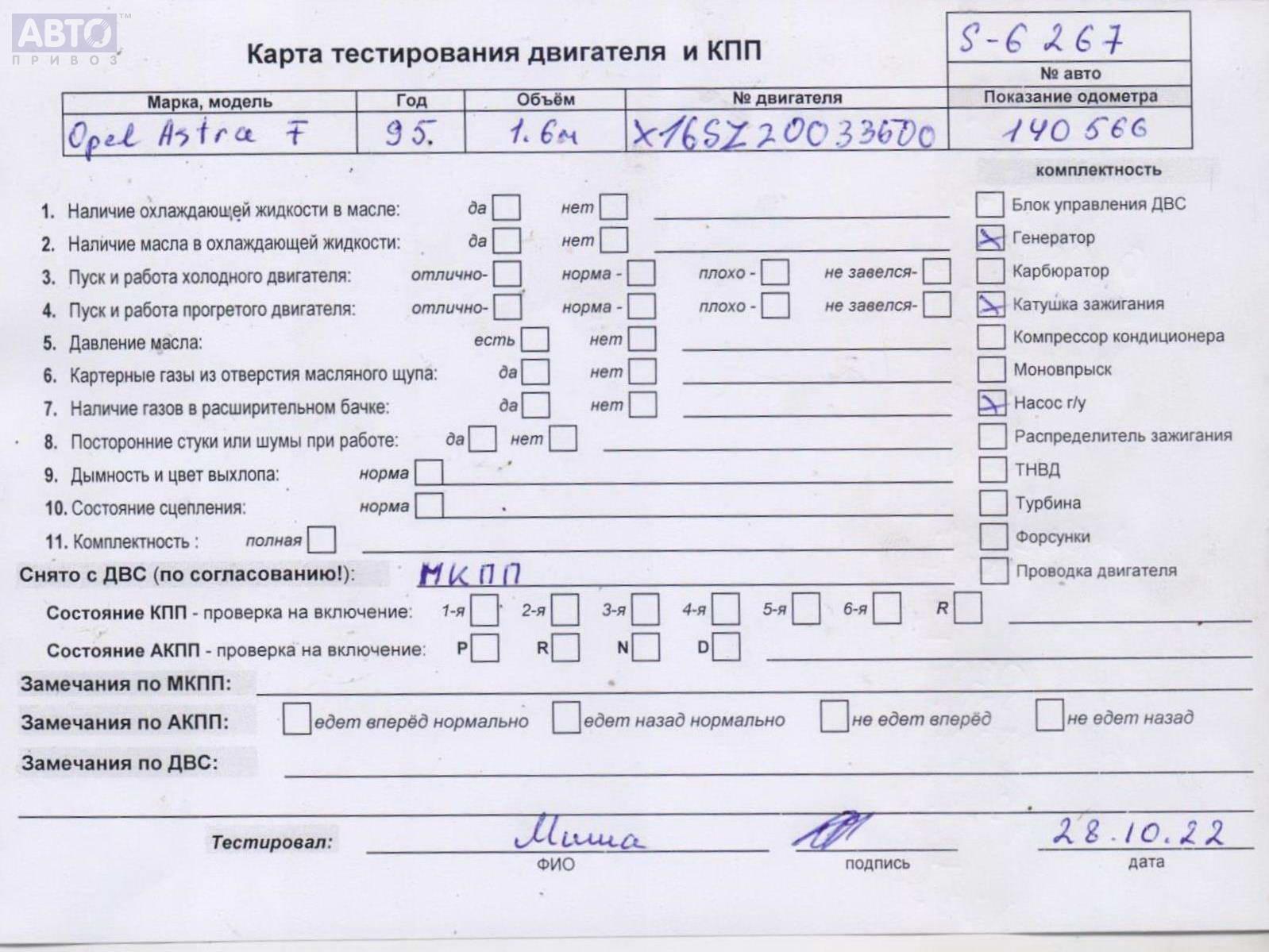 | Марка / Модель / Год: | Opel Astra F (1991-1998) 1995 |