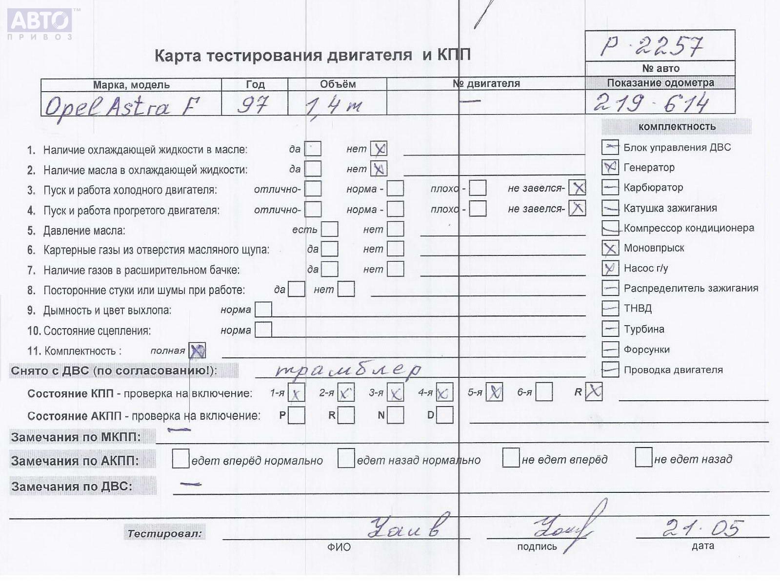 | Автомобиль / VIN: | P2257 W0L000051V2122991 |
