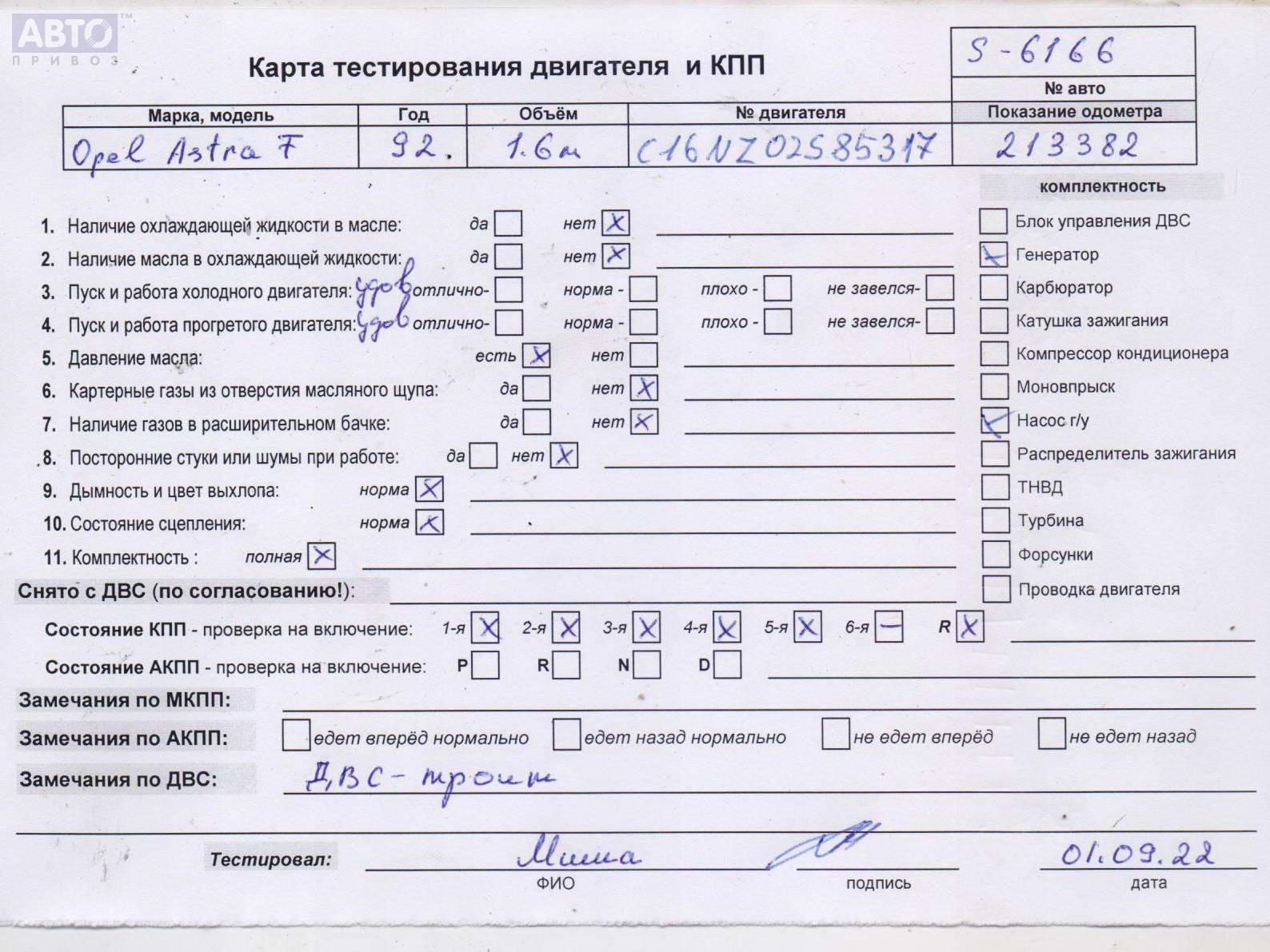 | Марка / Модель / Год: | Opel Astra F (1991-1998) 1992 |