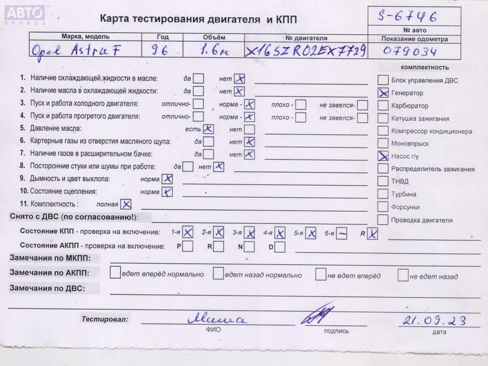 | Марка / Модель / Год: | Opel Astra F (1991-1998) 1996 |