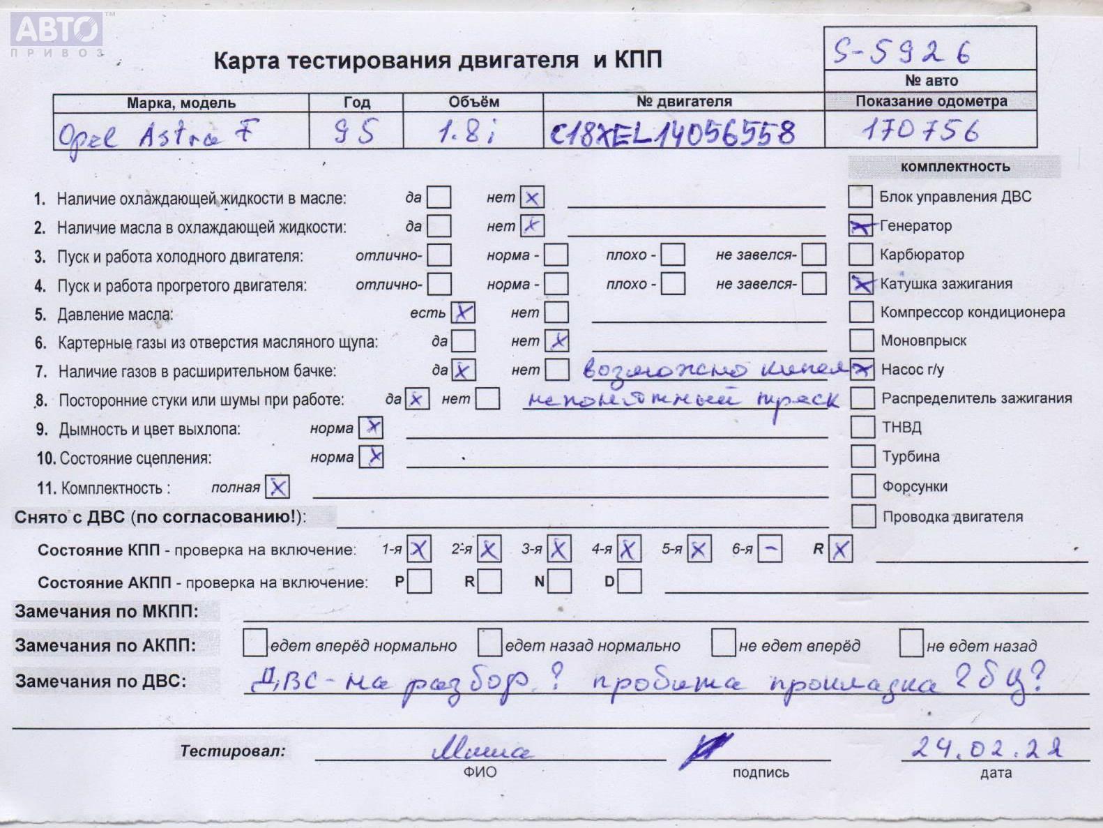 | Марка / Модель / Год: | Opel Astra F (1991-1998) 1995 |