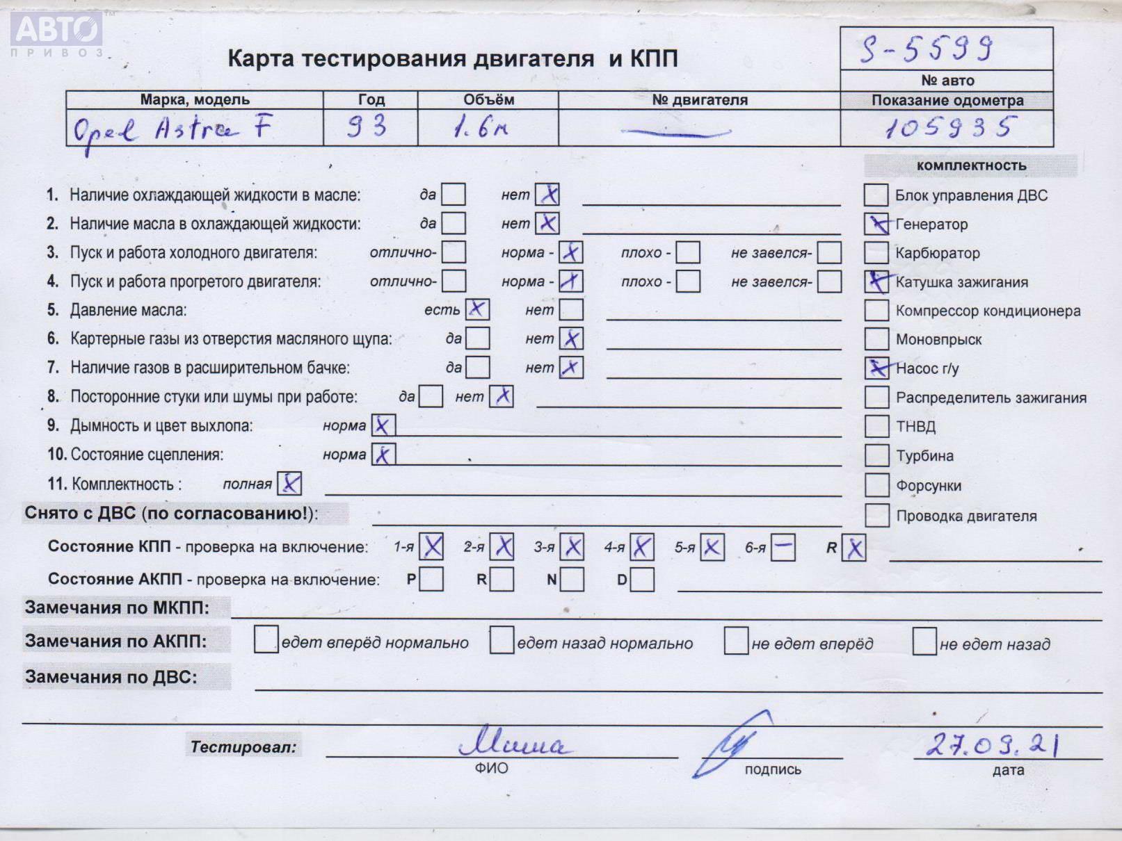 | Марка / Модель / Год: | Opel Astra F (1991-1998) 1993 |