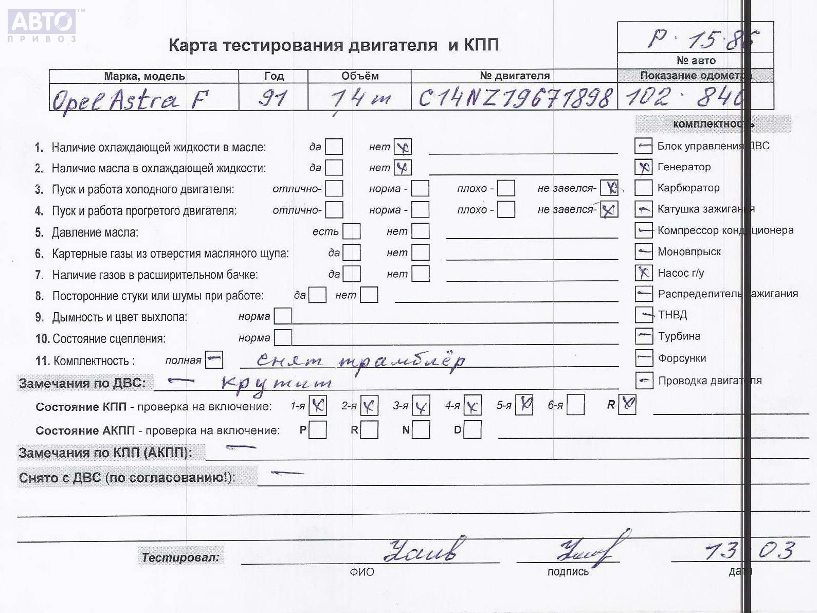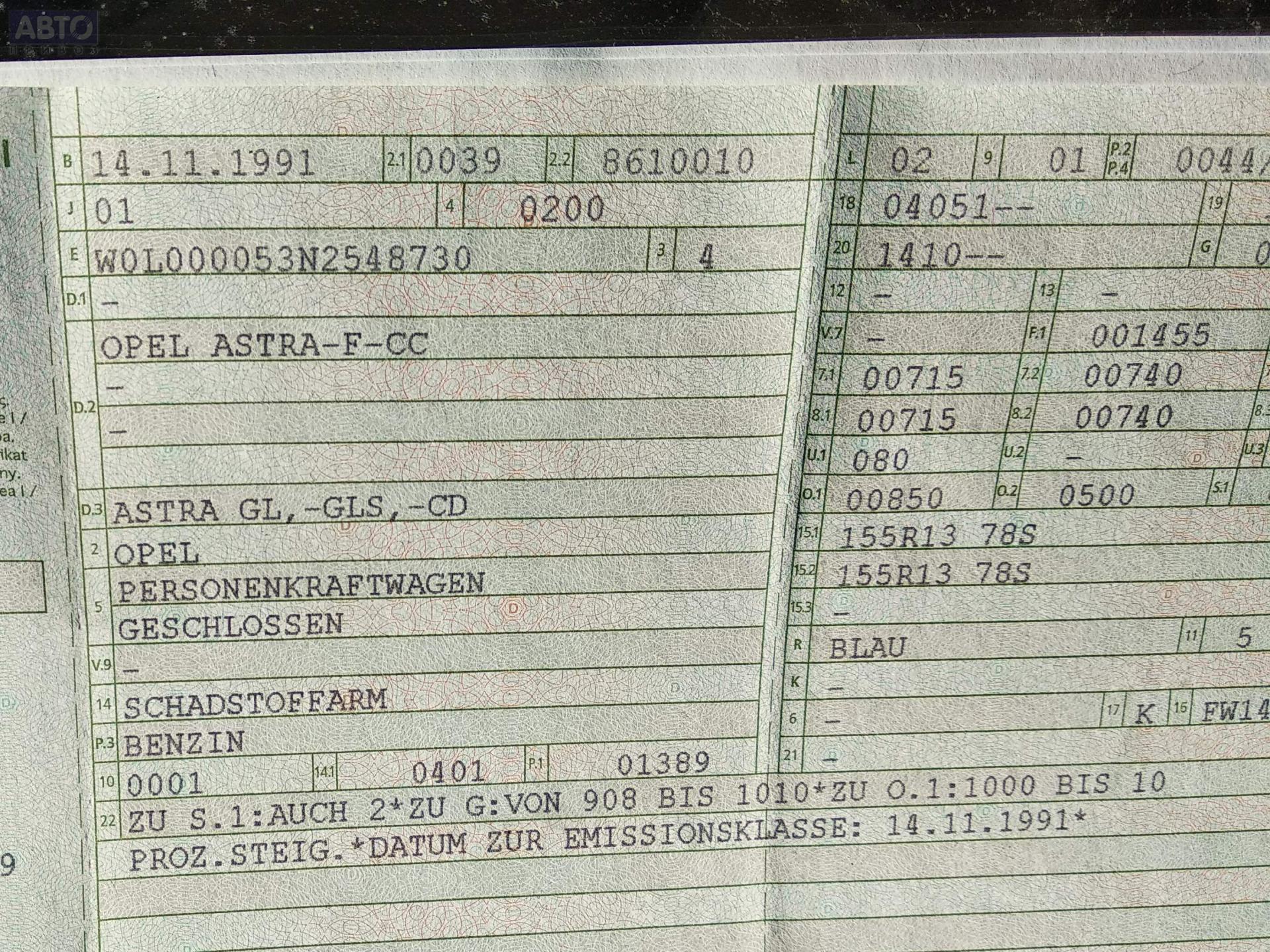 | Марка / Модель / Год: | Opel Astra F (1991-1998) 1991 |