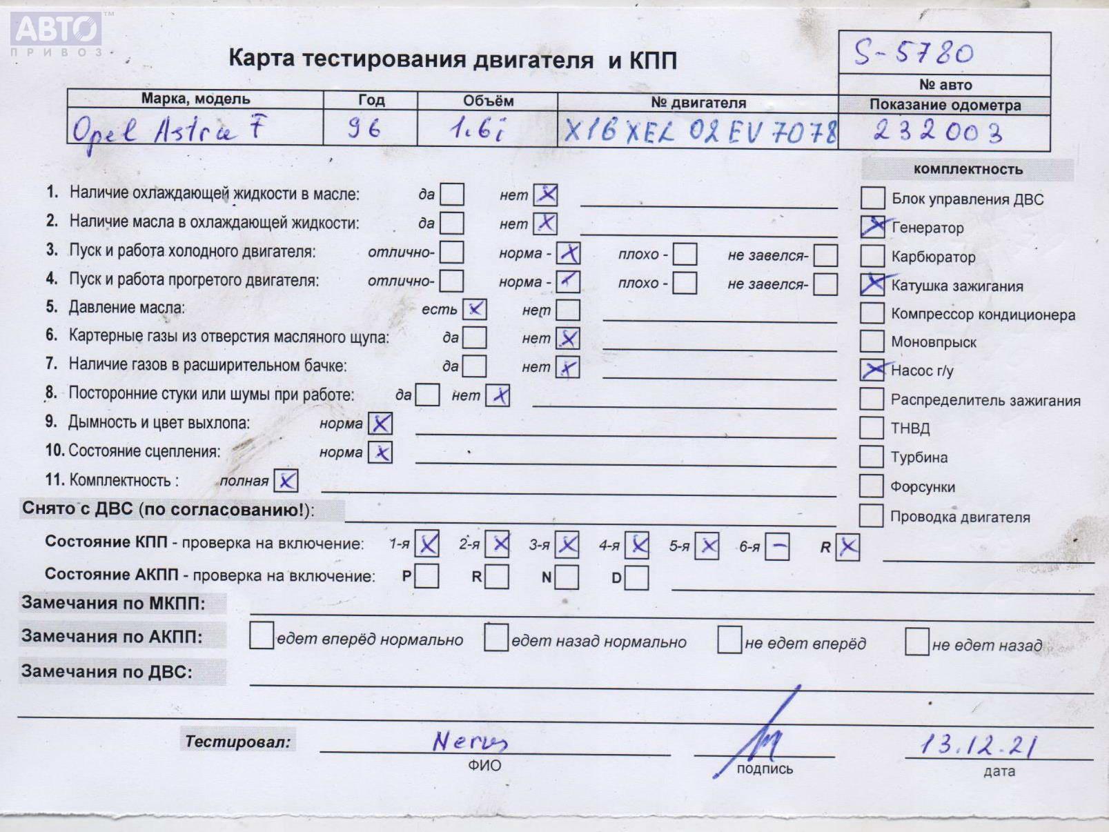 | Марка / Модель / Год: | Opel Astra F (1991-1998) 1996 |