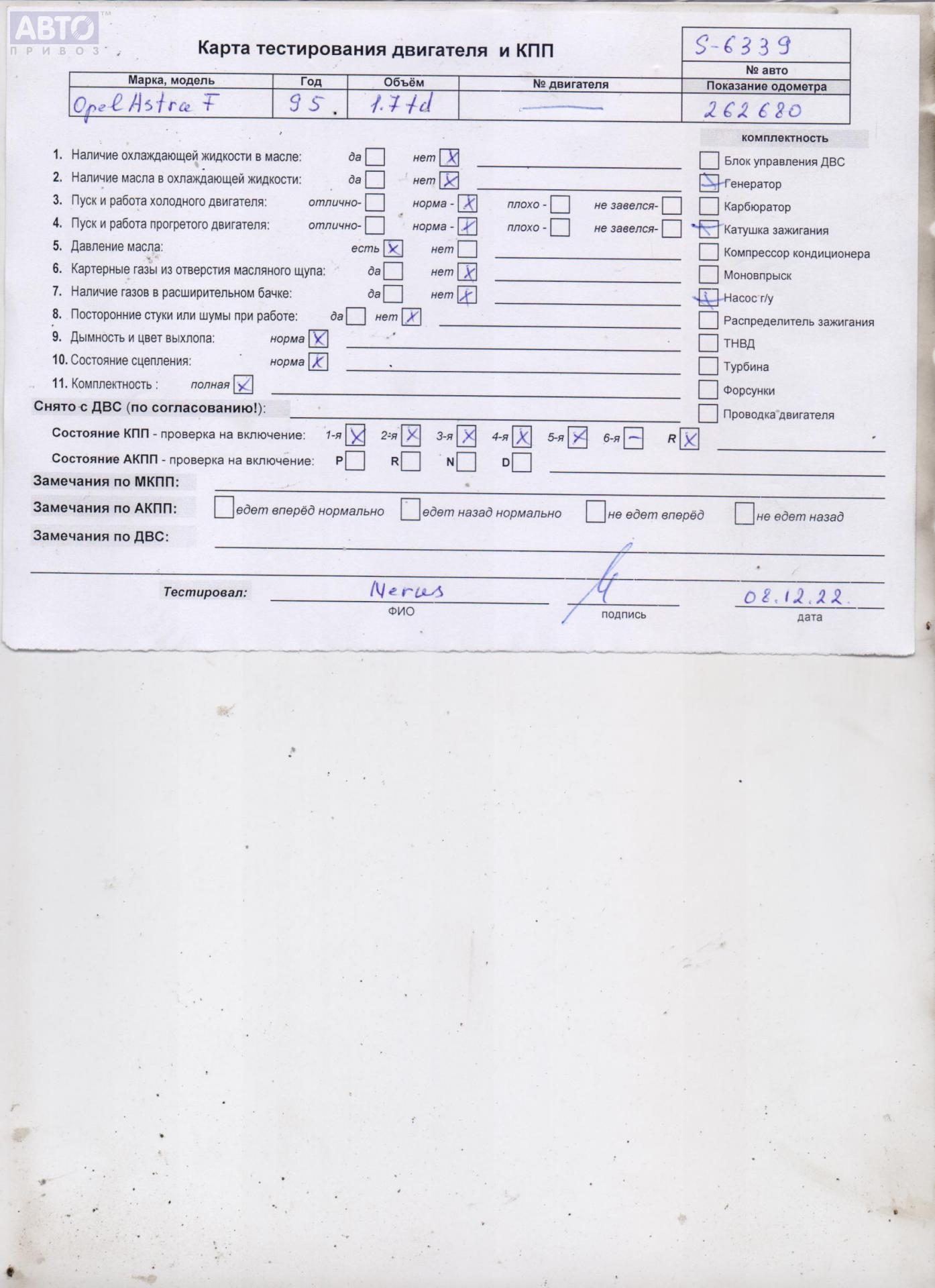 | Марка / Модель / Год: | Opel Astra F (1991-1998) 1995 |
