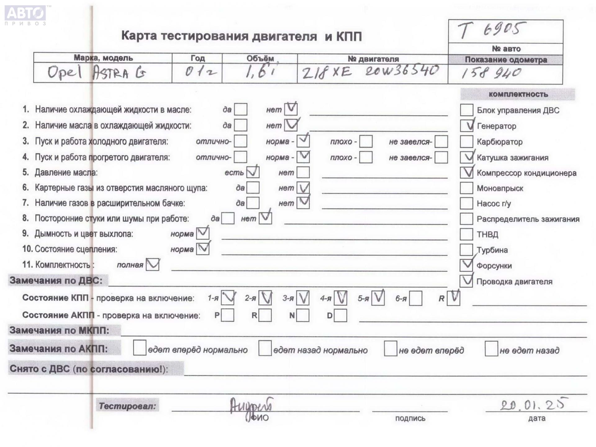 | Марка / Модель / Год: | Opel Astra G (1998-2004) 2001 |