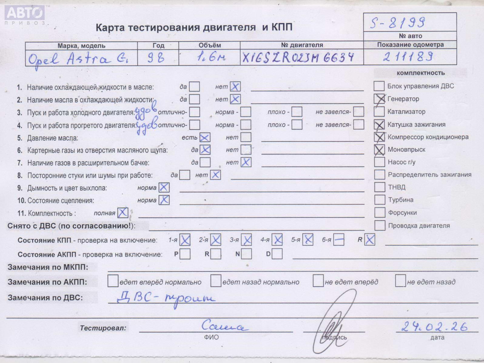 | Марка / Модель / Год: | Opel Astra G (1998-2004) 1998 |