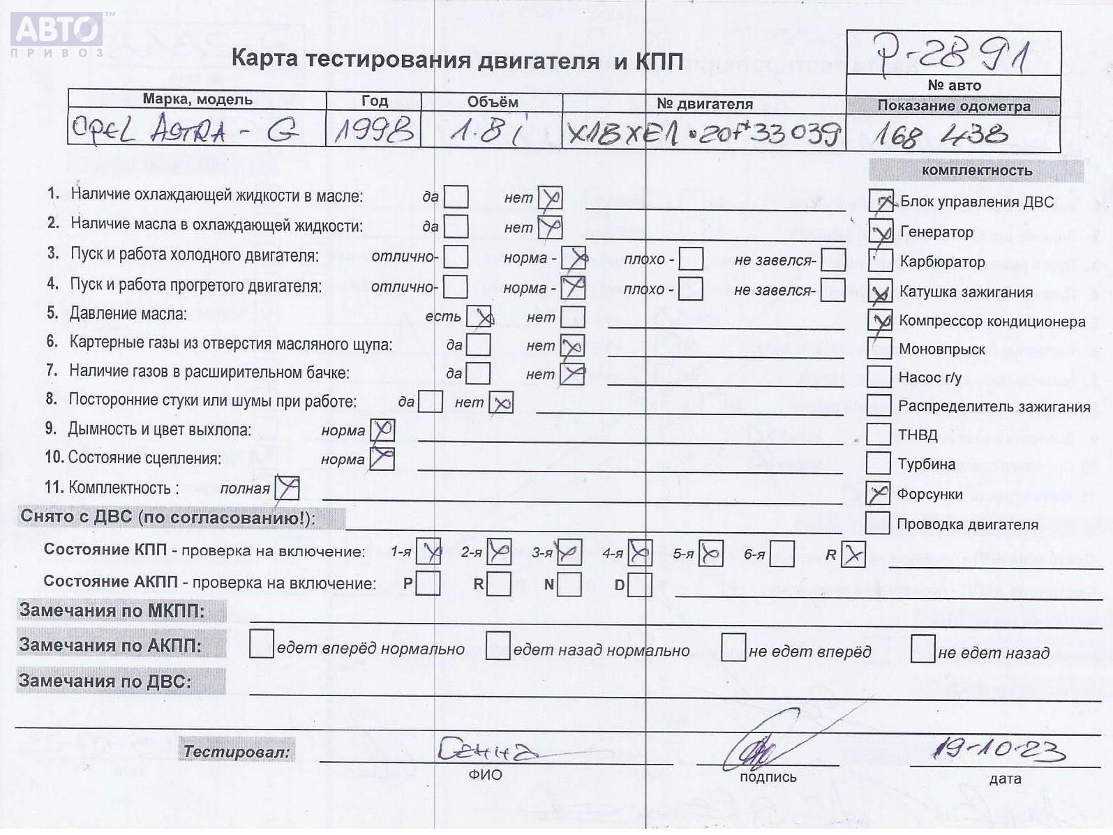 | Марка / Модель / Год: | Opel Astra G (1998-2004) 1998 |