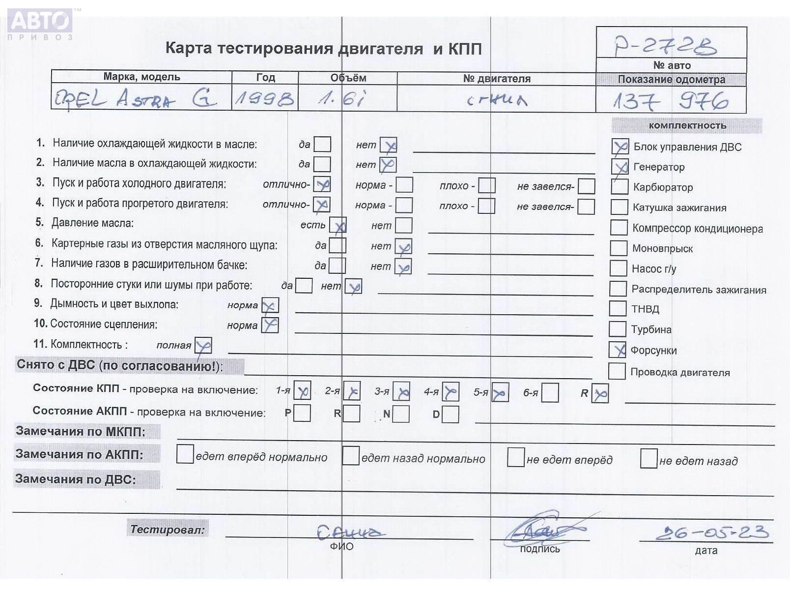 | Марка / Модель / Год: | Opel Astra G (1998-2004) 1998 |