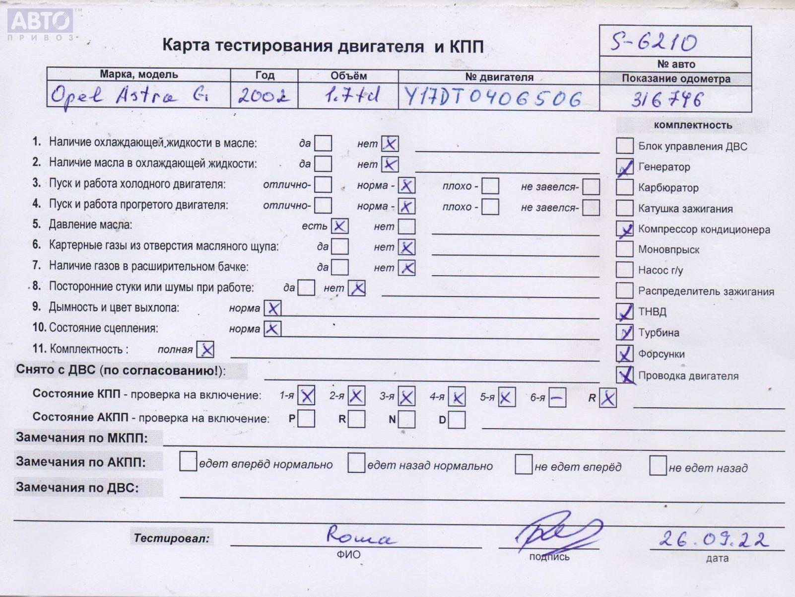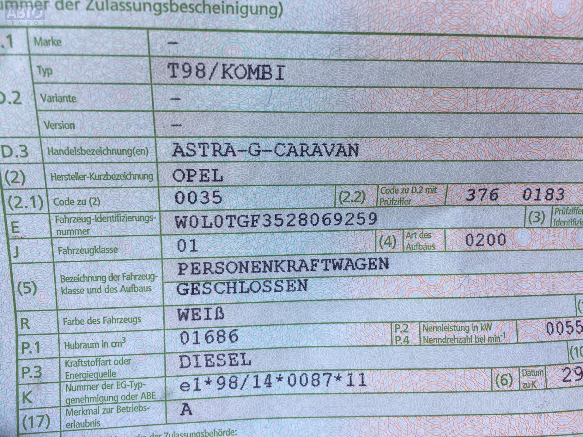 | Марка / Модель / Год: | Opel Astra G (1998-2004) 2002 |