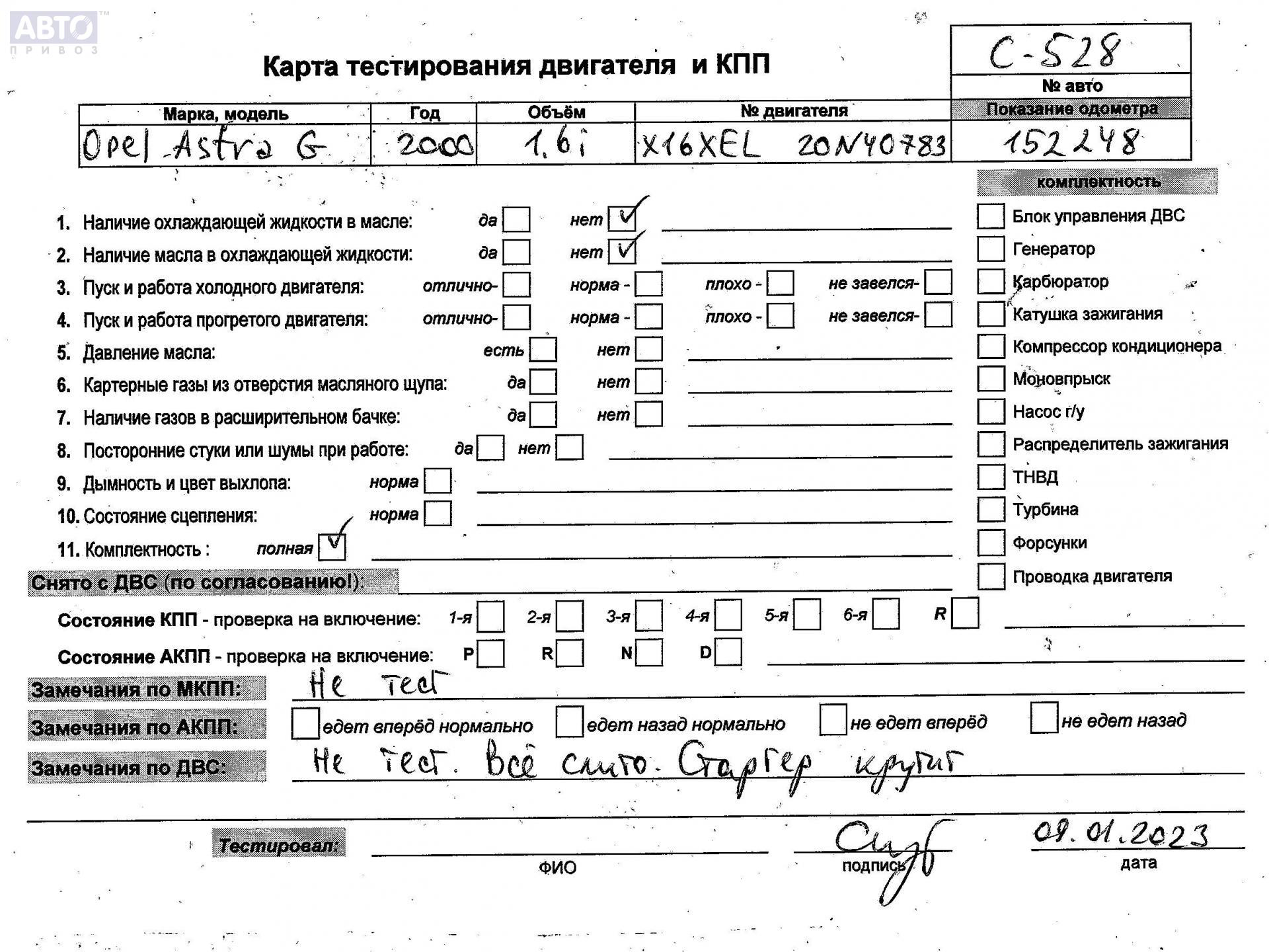 | Марка / Модель / Год: | Opel Astra G (1998-2004) 2000 |