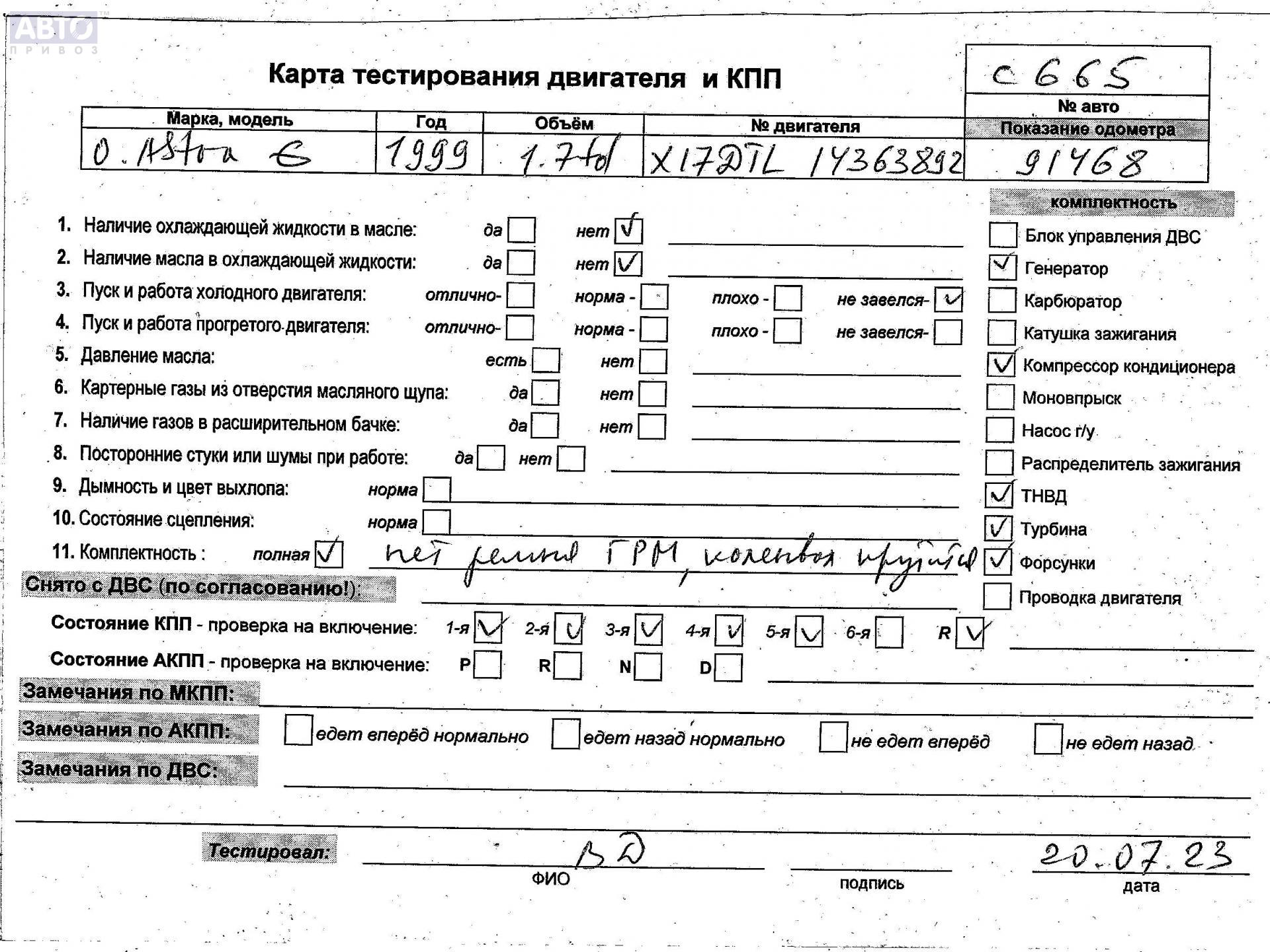 | Двигатель / КПП: | 1.7л Дизель TD Мех. |