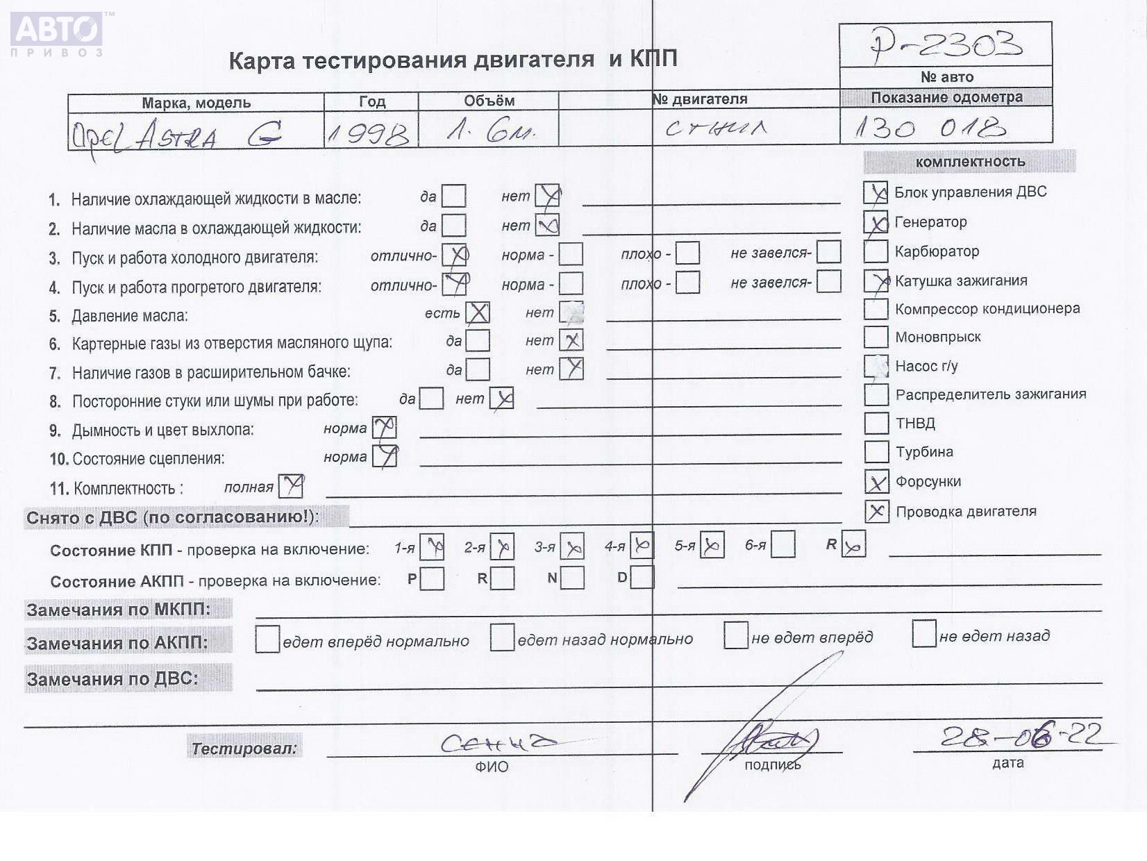 | Марка / Модель / Год: | Opel Astra G (1998-2004) 1998 |