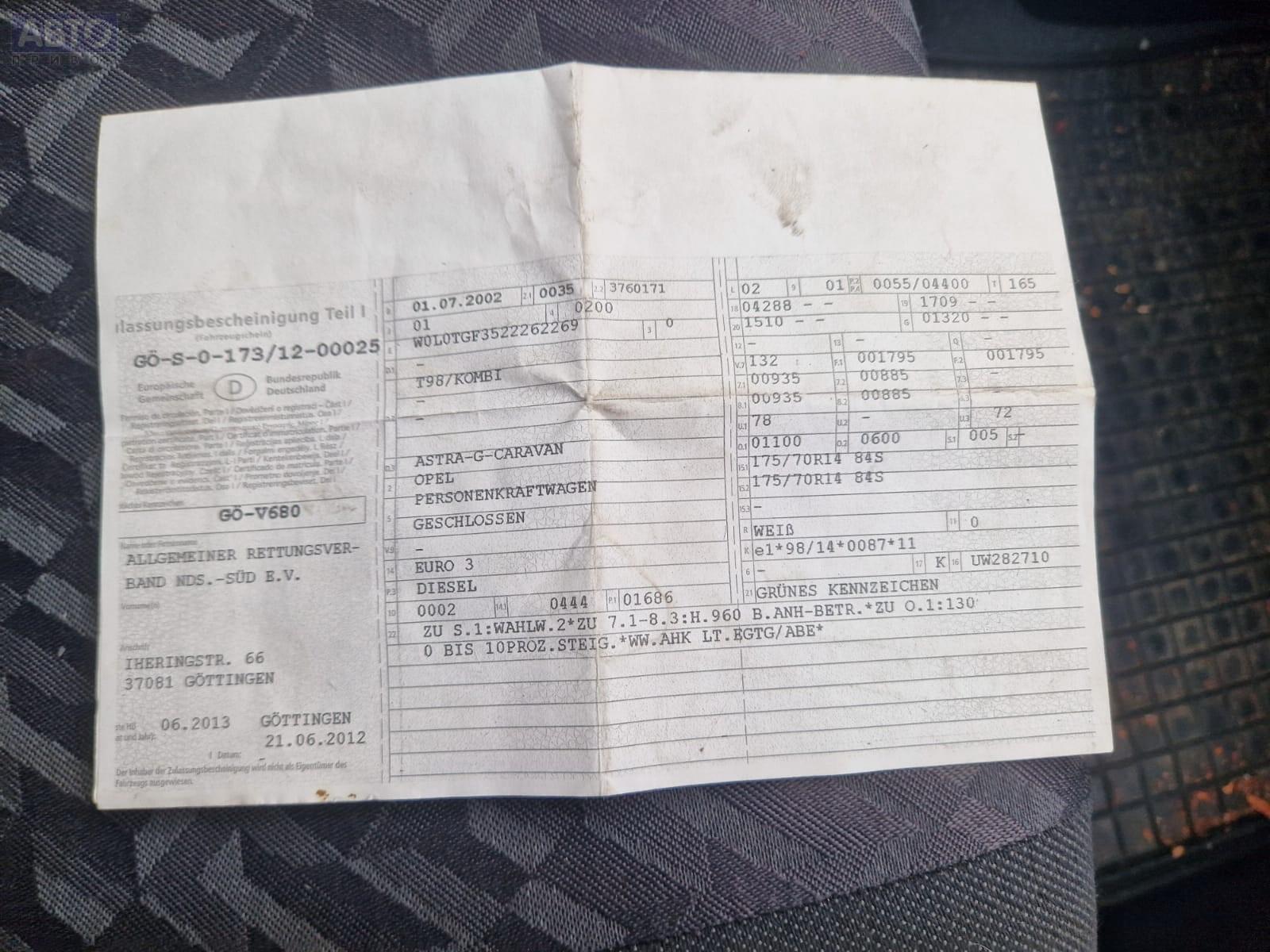 | Марка / Модель / Год: | Opel Astra G (1998-2004) 2002 |