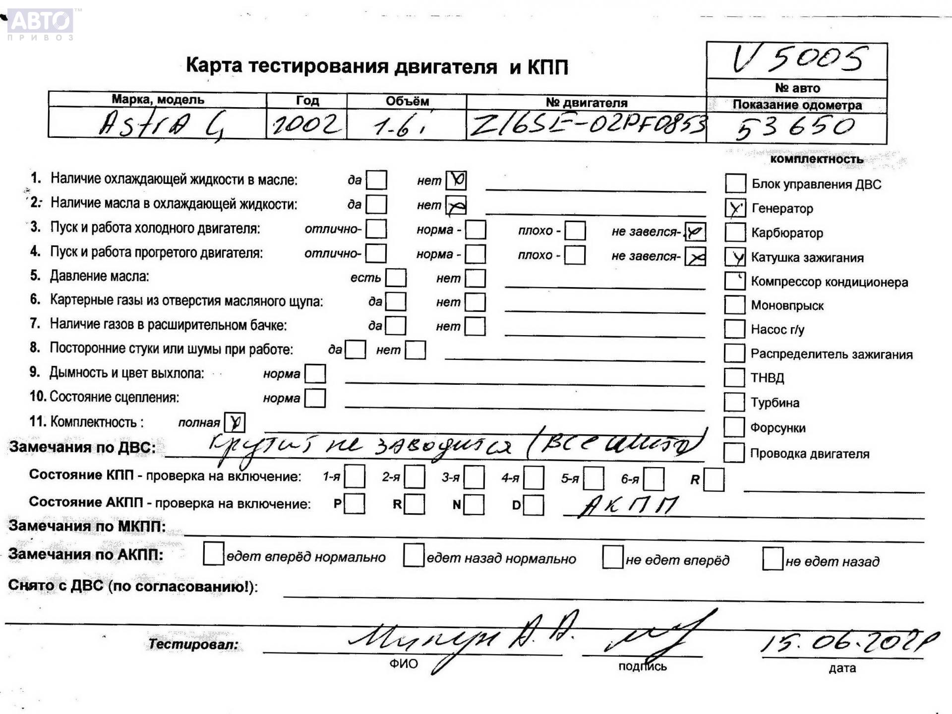 | Марка / Модель / Год: | Opel Astra G (1998-2004) 2002 |