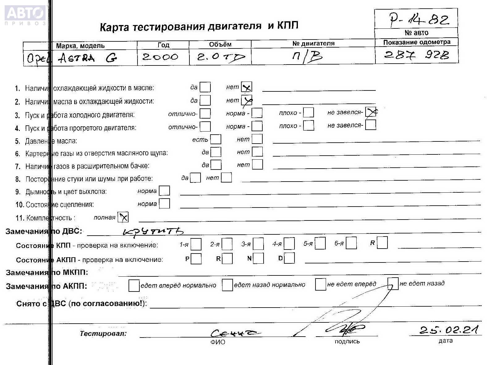 | Автомобиль / VIN: | P1482 W0L0TGF35Y2260185 |