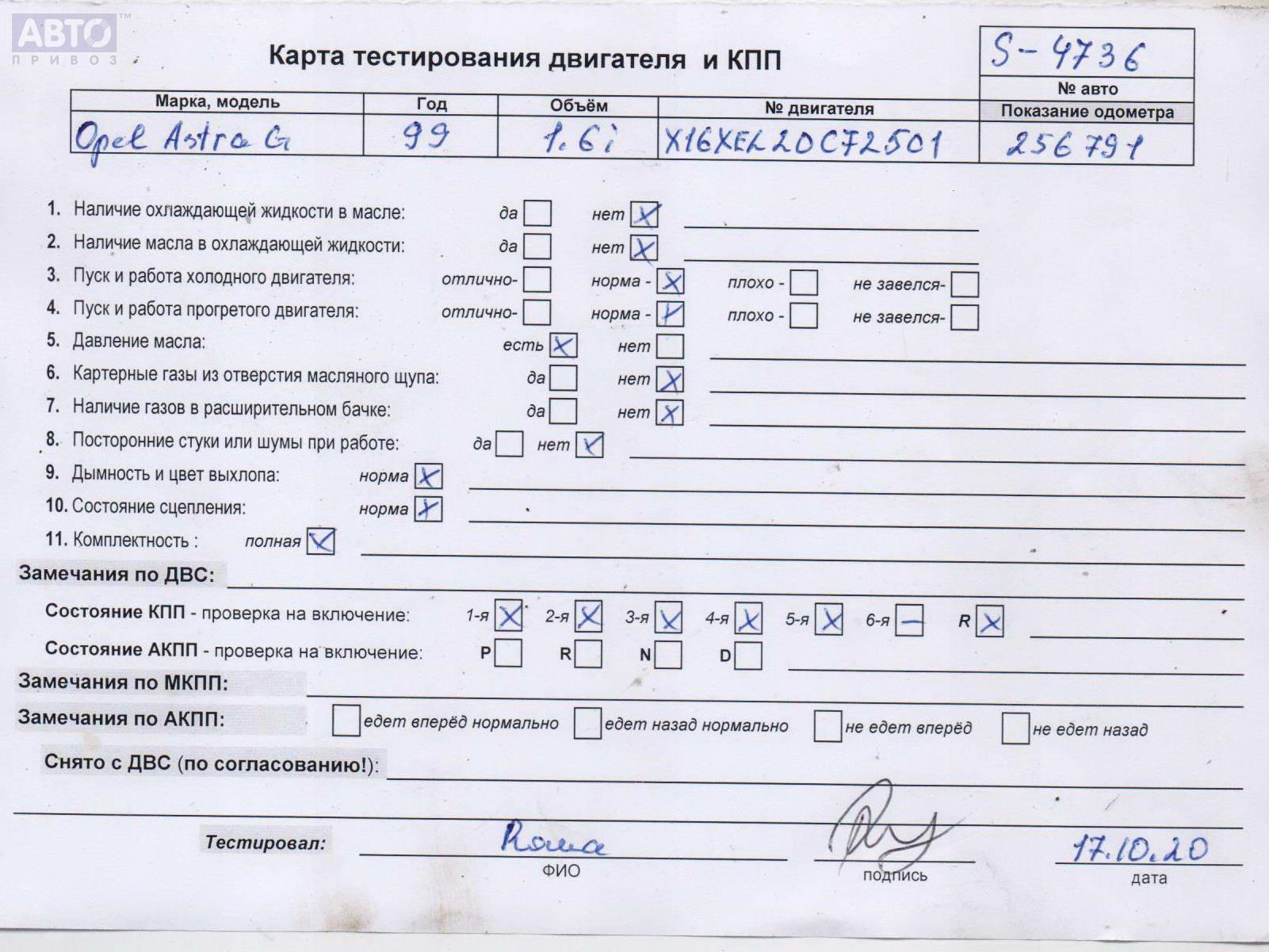 | Марка / Модель / Год: | Opel Astra G (1998-2004) 1999 |
