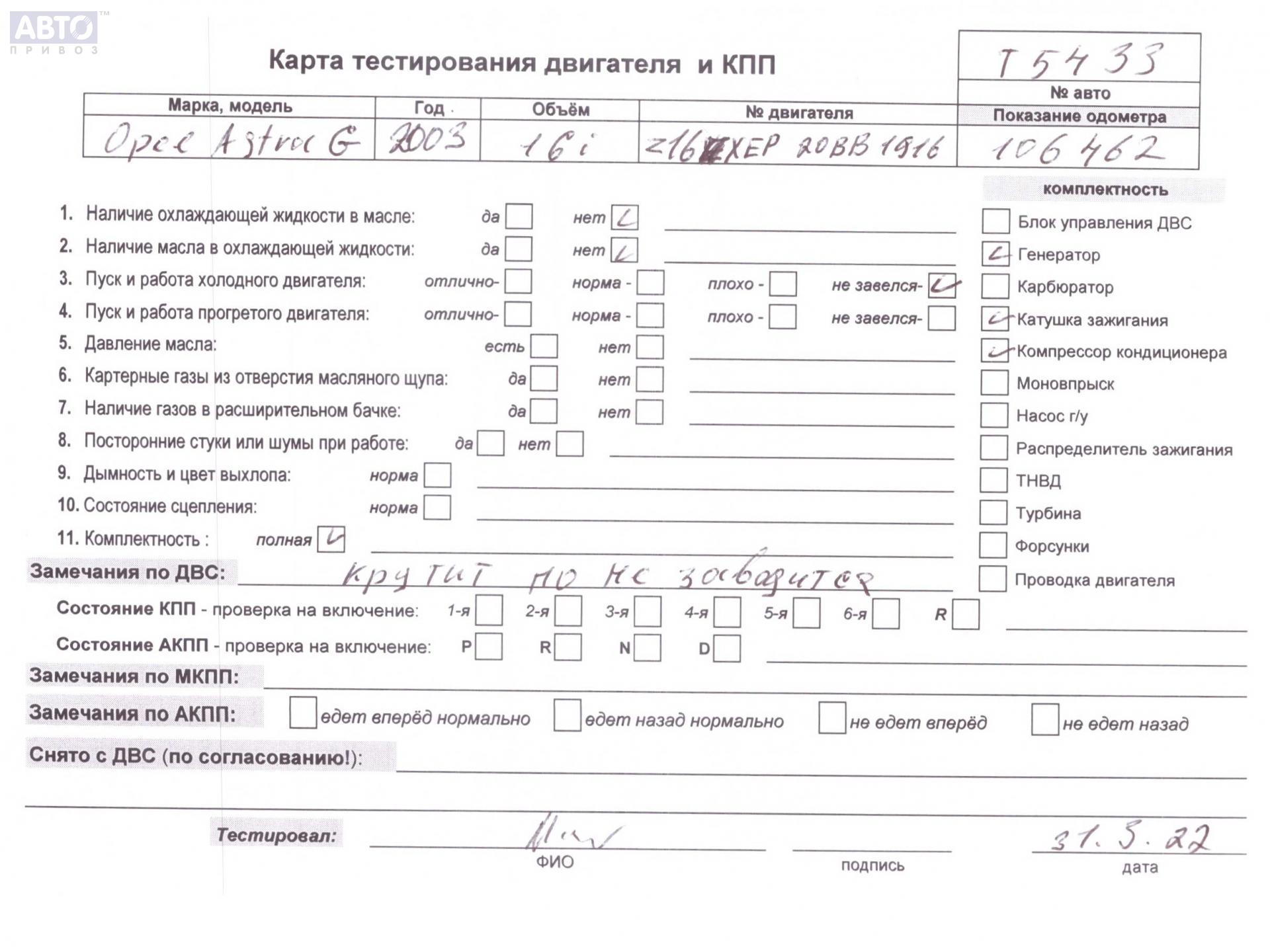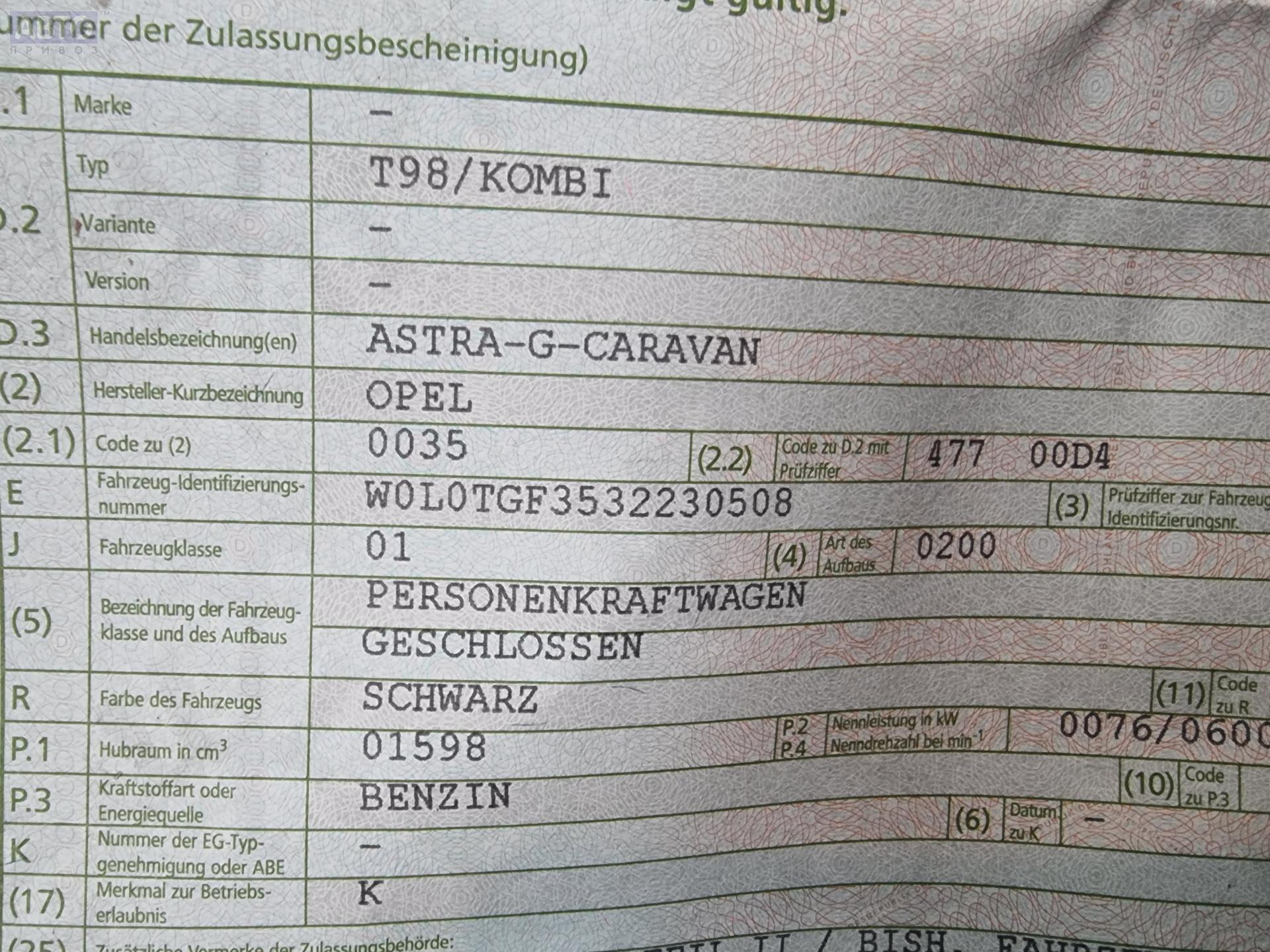 | Марка / Модель / Год: | Opel Astra G (1998-2004) 2003 |