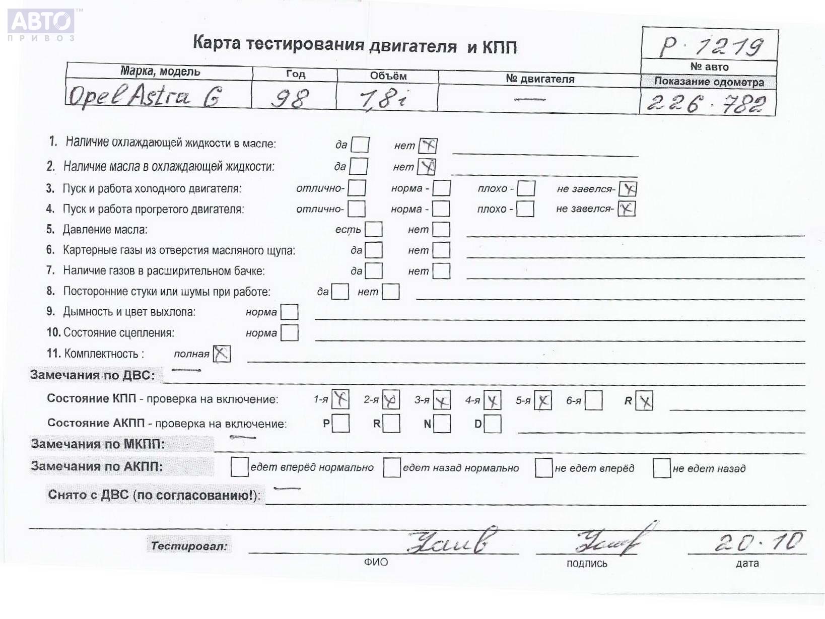 | Марка / Модель / Год: | Opel Astra G (1998-2004) 1998 |