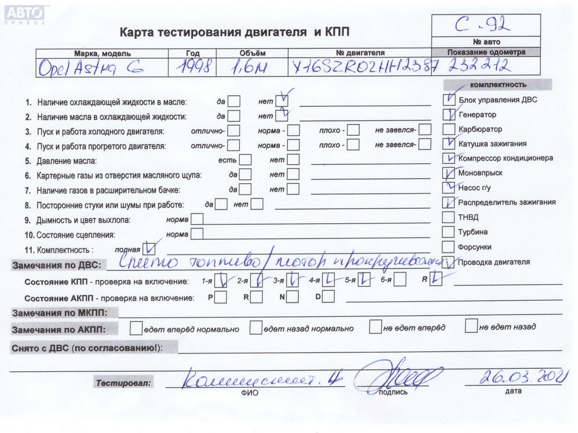| Марка / Модель / Год: | Opel Astra G (1998-2004) 1998 |