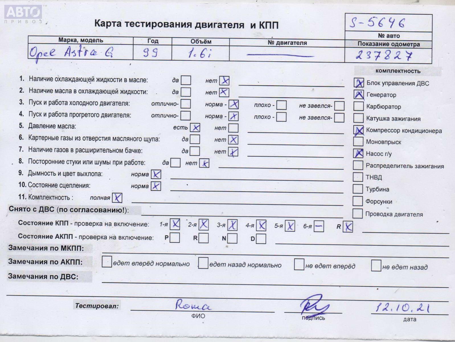 | Марка / Модель / Год: | Opel Astra G (1998-2004) 1999 |
