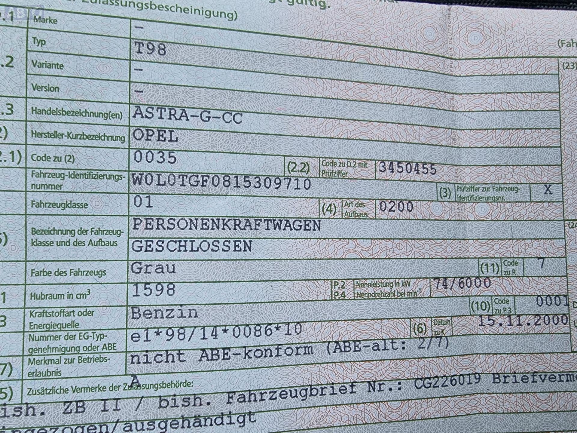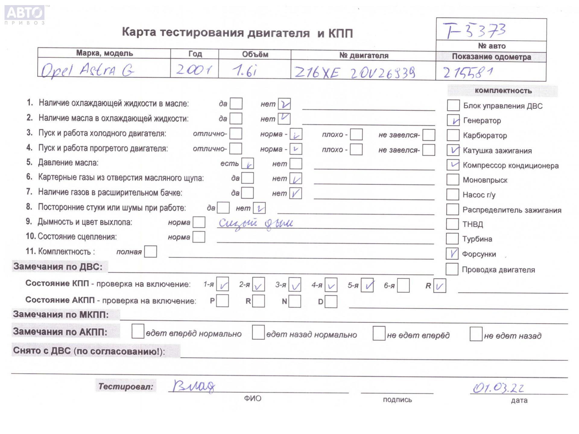 | Марка / Модель / Год: | Opel Astra G (1998-2004) 2001 |
