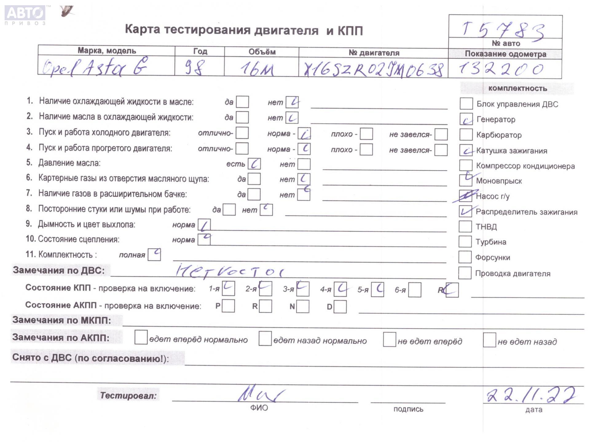 | Марка / Модель / Год: | Opel Astra G (1998-2004) 1998 |