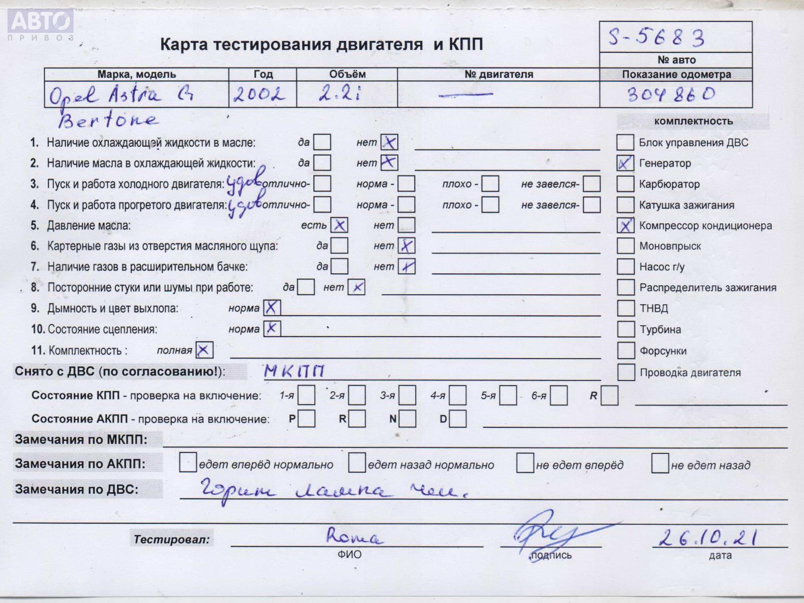 | Марка / Модель / Год: | Opel Astra G (1998-2004) 2002 |