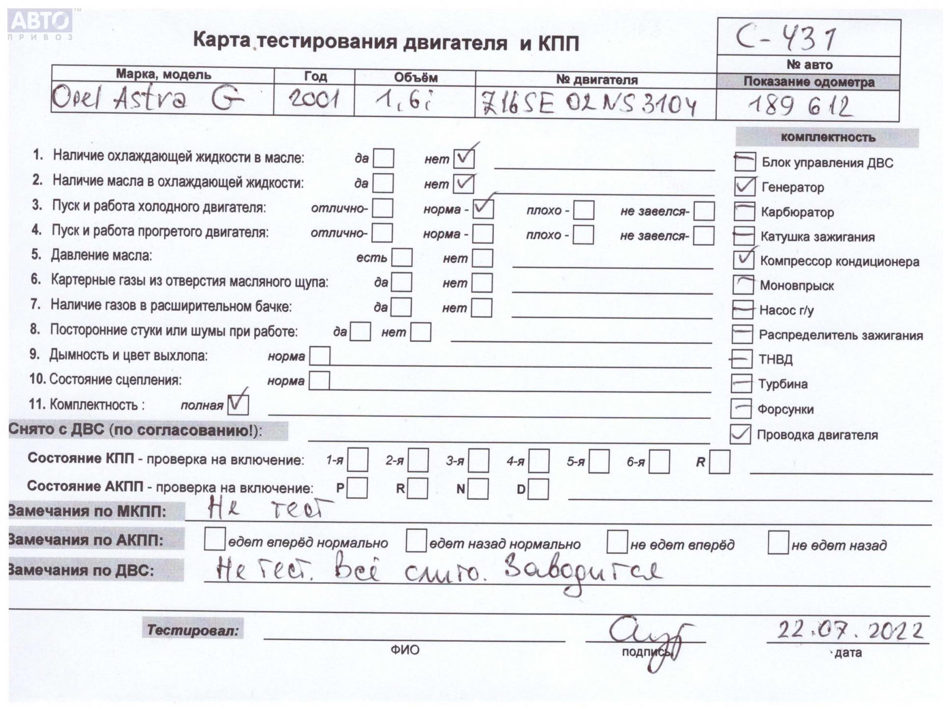 | Марка / Модель / Год: | Opel Astra G (1998-2004) 2001 |