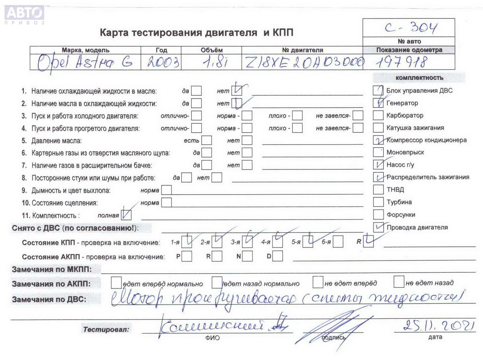 | Марка / Модель / Год: | Opel Astra G (1998-2004) 2003 |