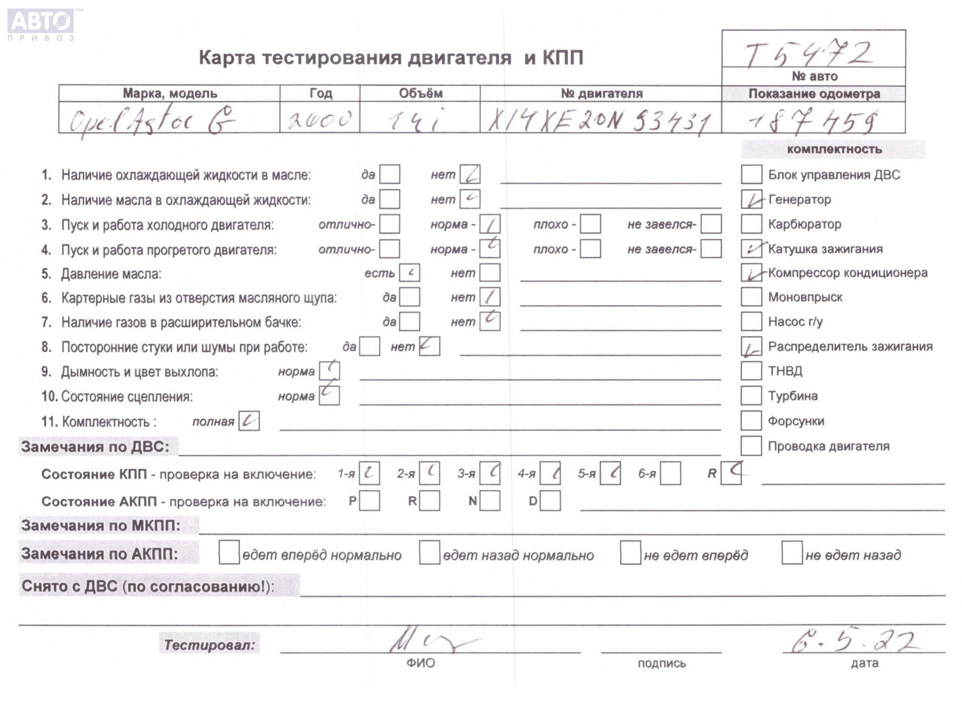 | Марка / Модель / Год: | Opel Astra G (1998-2004) 2000 |