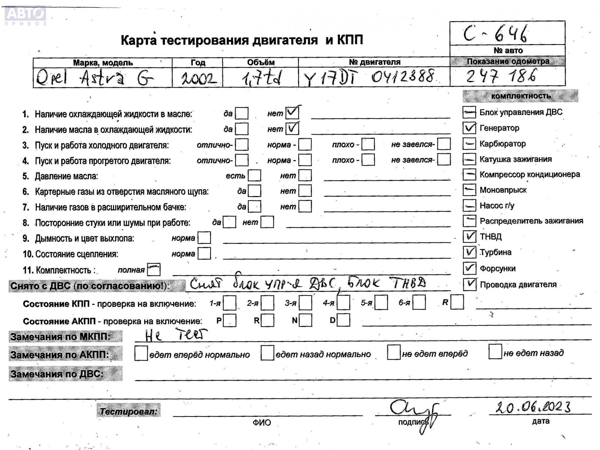 | Марка / Модель / Год: | Opel Astra G (1998-2004) 2002 |