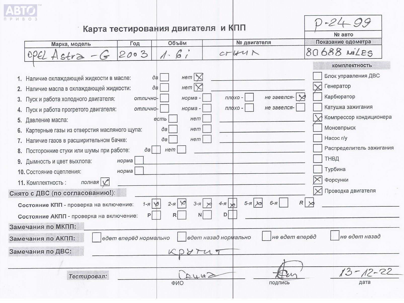 | Марка / Модель / Год: | Opel Astra G (1998-2004) 2003 |