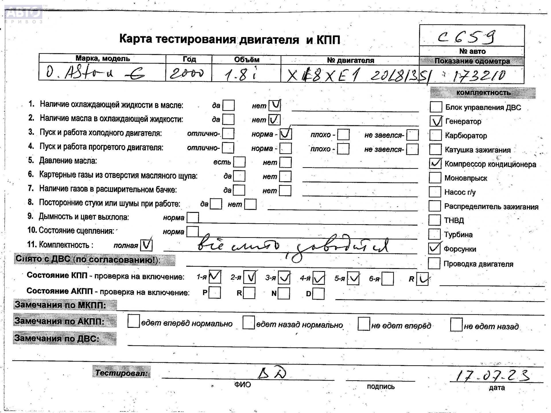 | Марка / Модель / Год: | Opel Astra G (1998-2004) 2000 |