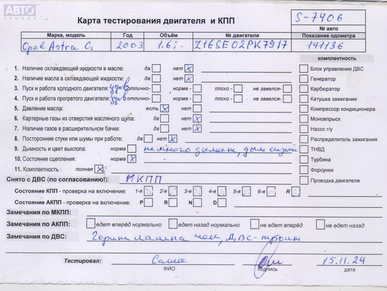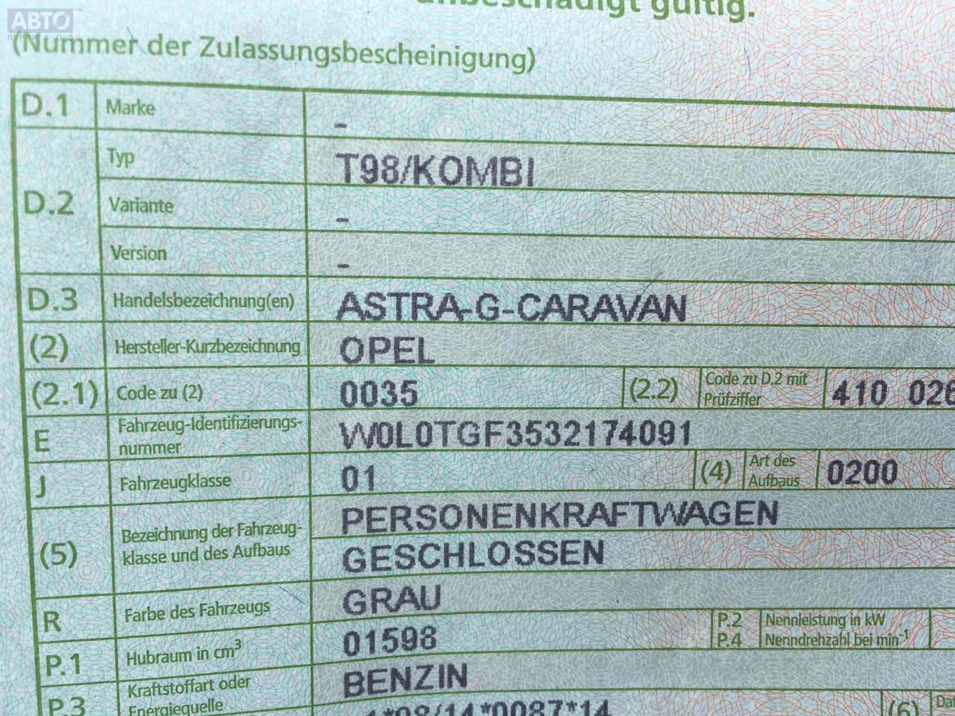 | Марка / Модель / Год: | Opel Astra G (1998-2004) 2003 |